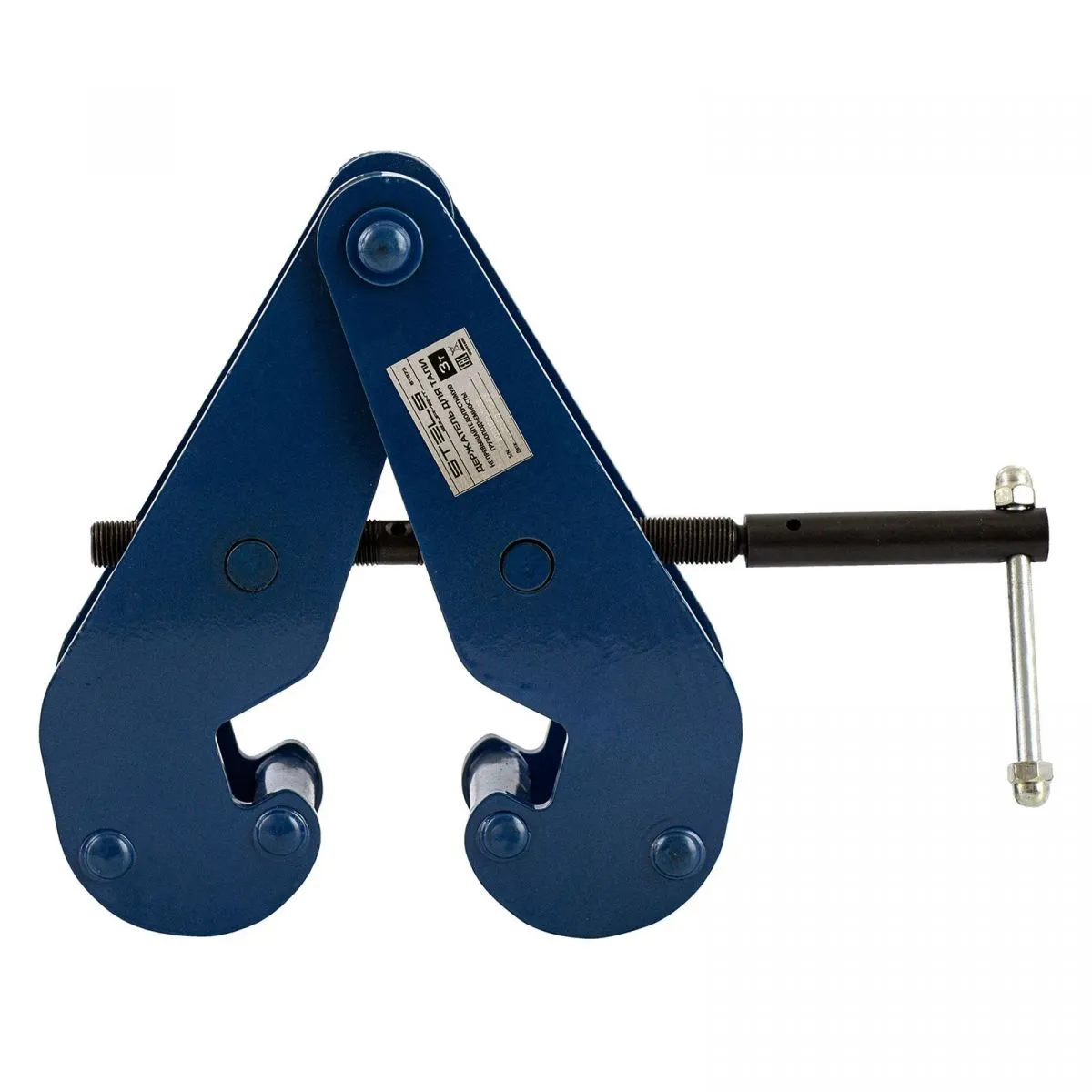 Держатель для тали Stels 51973 позволяет зафиксировать ее на балке шириной от 80 до 320 мм для подъема грузов весом до 3 т. Благодаря симметричной конструкции держателя нагрузка распределяется равномерно по центру балки, что повышает надежность грузоподъемной системы.