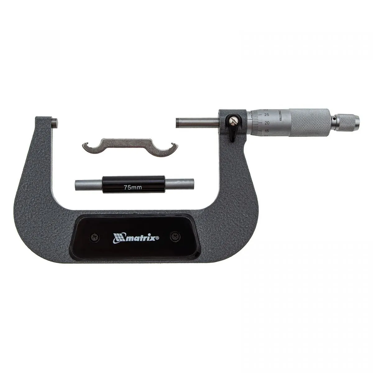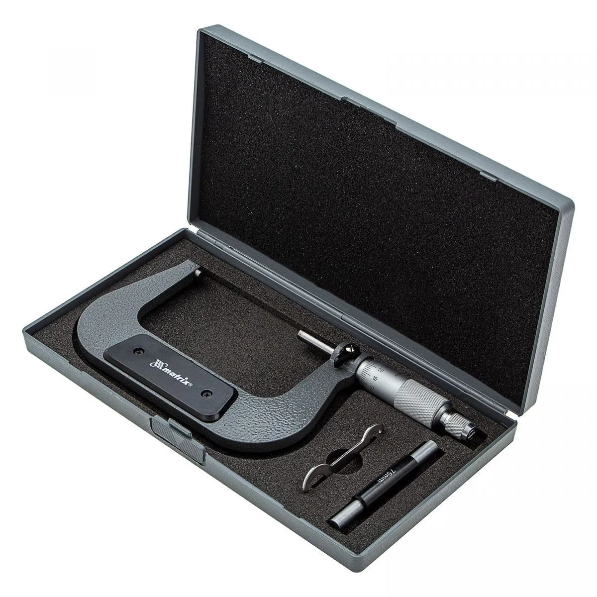 Микрометр механический Matrix 317005 используется для измерения толщины листового металла и деталей размером 75-100 мм. Обеспечивает высокую точность результатов — шаг измерения составляет 0,01 мм с допустимой погрешностью ±0,004 мм. Комплектуется установочной мерой, позволяющей при необходимости произвести настройку прибора. Микрометр будет полезен на производстве, в слесарной мастерской и автосервисе.