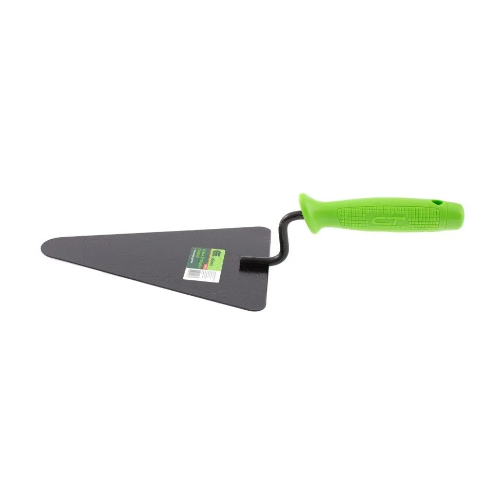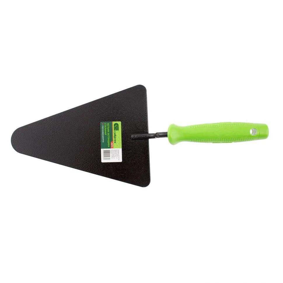 Стальная кельма бетонщика Сибртех 86213 с пластиковой ручкой используется для отмеривания материалов, перемешивания и нанесения строительных растворов, заполнения швов и удаления излишков во время кладки кирпича, строительных блоков и т. д. Треугольное полотно с прямыми гранями и закругленными краями удобно для подрезания и выравнивания раствора, в том числе и в труднодоступных местах.