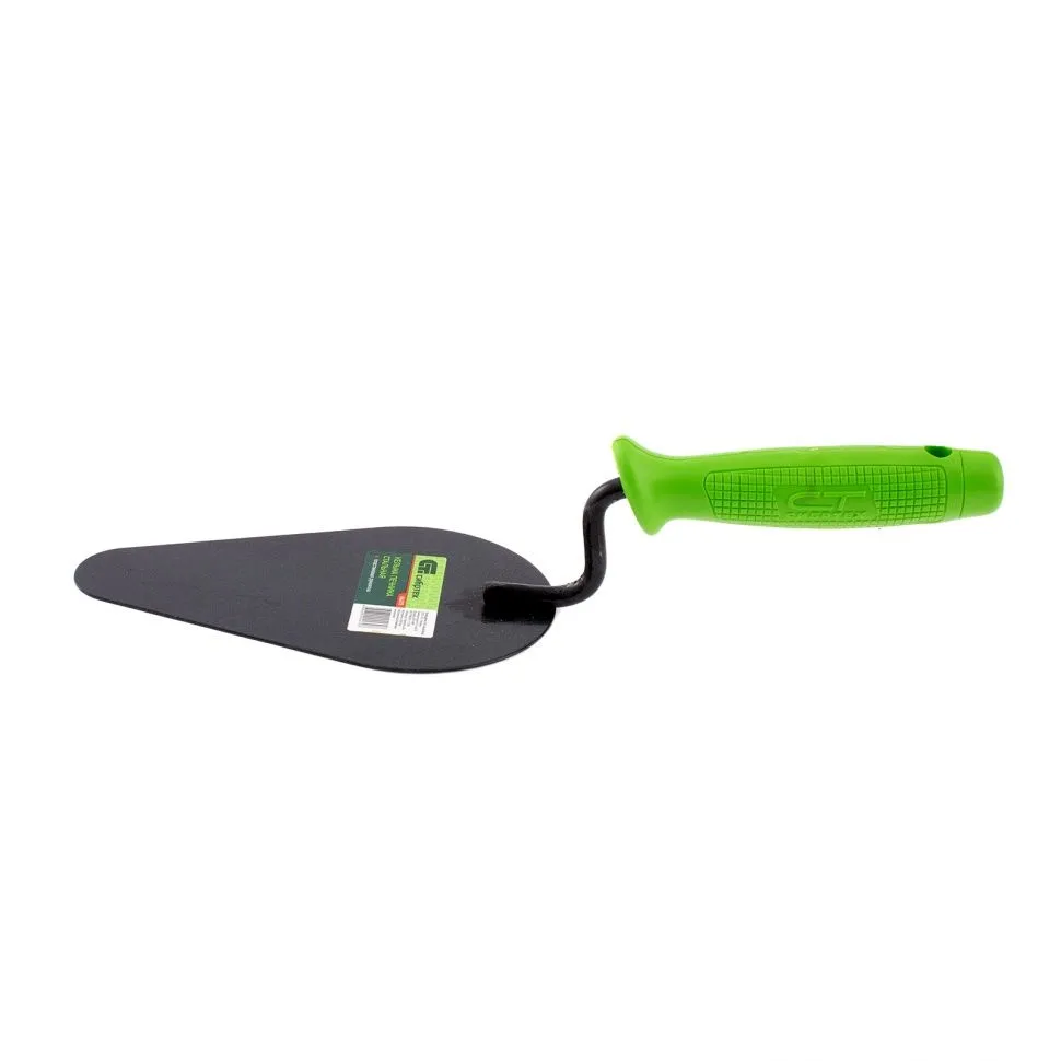 Стальная кельма печника Сибртех 86215 с пластиковой ручкой позволяет осуществить отделочные и строительные работы по укладке плитки или кирпича. С ее помощью можно отмерить необходимое количество смеси, аккуратно нанести и выровнять ее. Также кельма легко удаляет излишки раствора и позволяет заполнять вертикальные швы.