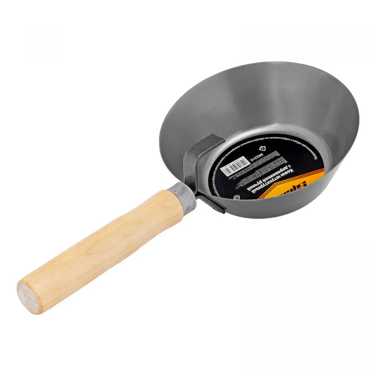 Стальной ковш Sparta 862315 с рабочей частью в форме усеченного конуса диаметром 160 мм и деревянной ручкой предназначен для работы со штукатурными смесями. Позволяет быстро набрасывать раствор, облегчая проведение строительных и ремонтных работ. Инструмент не требует особых навыков, работы можно проводить без использования специального инструмента.