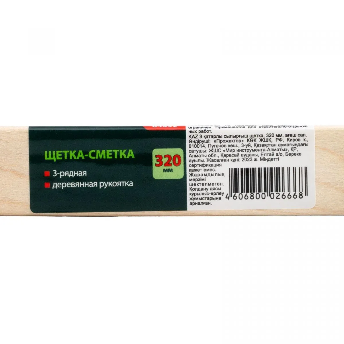 3-рядная щетка-сметка Сибртех 84632 шириной 320 мм, с деревянной ручкой, предназначена для уборки и позволяет быстро удалить пыль, стружки и другой мусор со стола, верстака или станка. Щетка будет полезна на строительной площадке, в производственном помещении, мастерской, а также дома, на даче или в гараже.