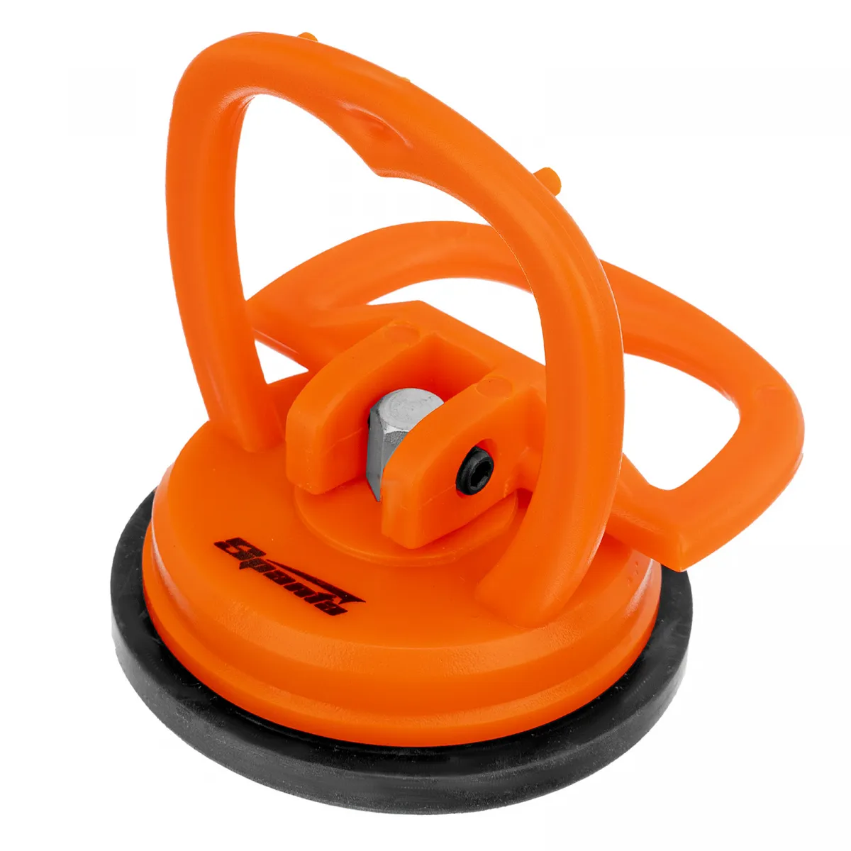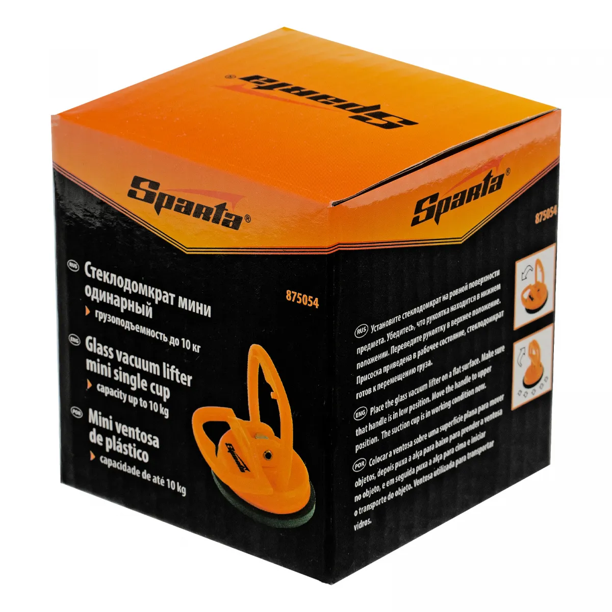 Одинарный мини-стеклодомкрат Sparta 875054 служит для захвата, удержания и перемещения стекол, зеркал, кафельной плитки и других плоских гладких предметов весом до 10 кг. Имеет вакуумную присоску, которая после складывания рукоятки бережно прижимается к чистой сухой поверхности и прочно фиксируется на ней. Инструмент пригодится во время проведения ремонтных и отделочных работ.