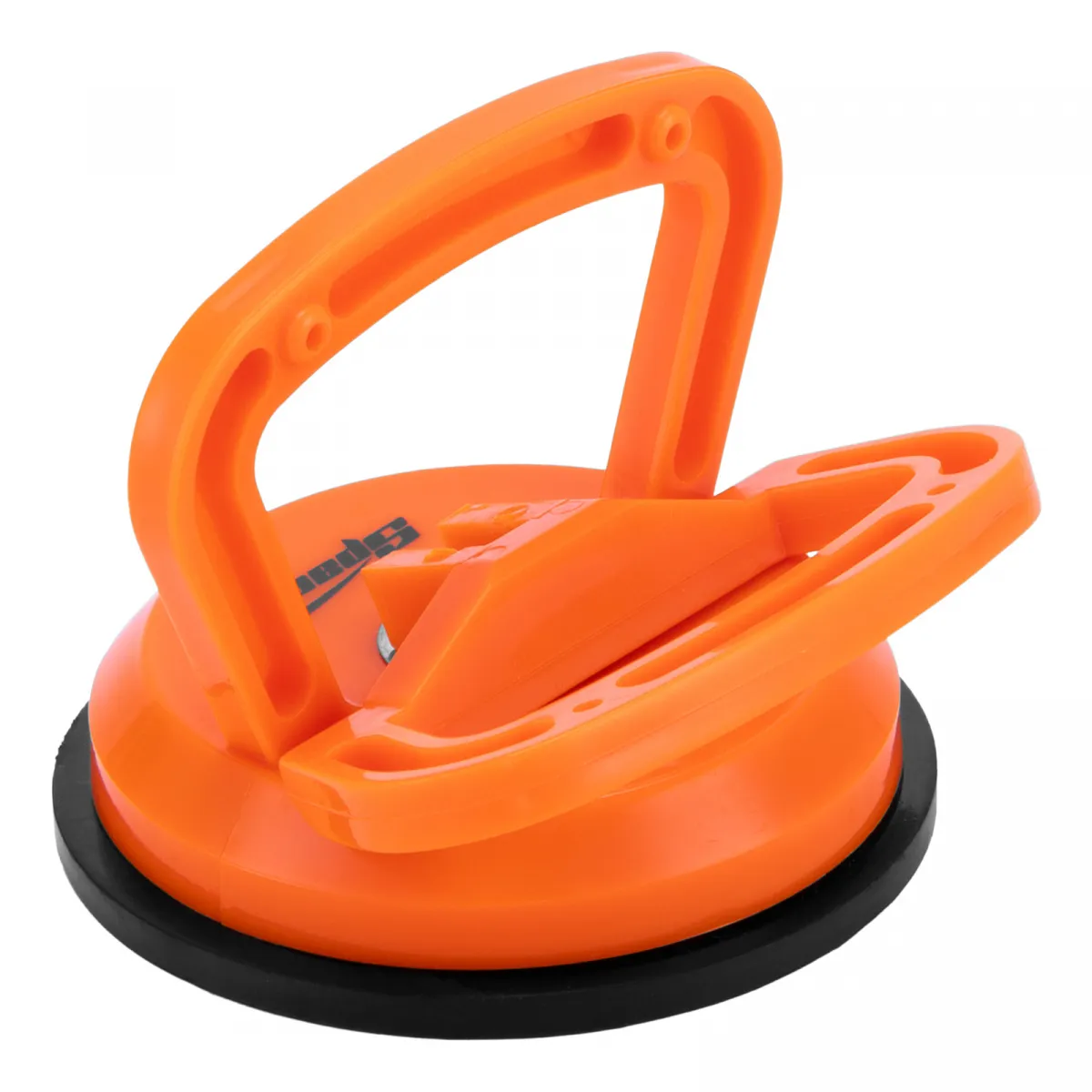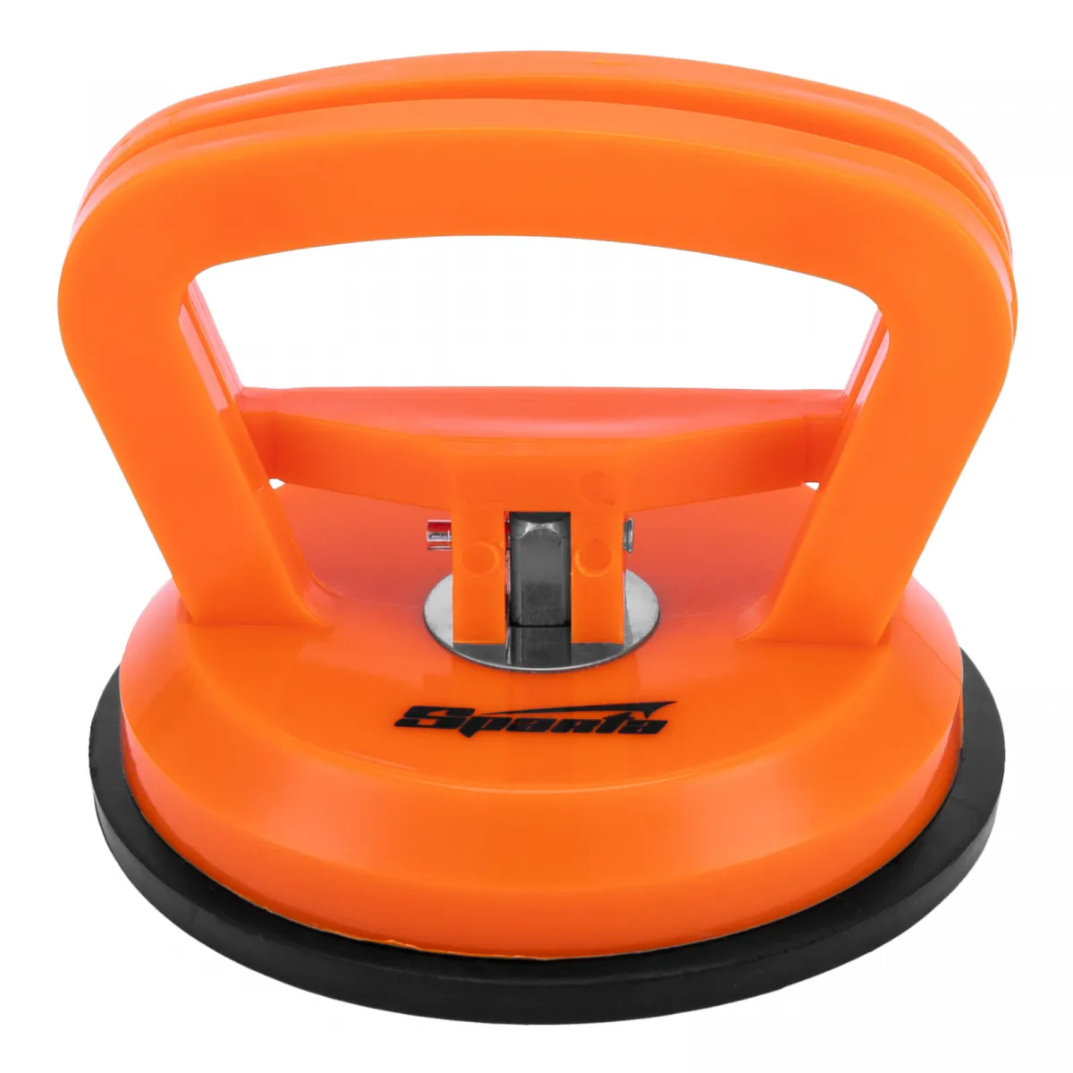 Одинарный стеклодомкрат Sparta 875055 служит для захвата, удержания и перемещения стекол, зеркал, кафельной плитки и других плоских гладких предметов весом до 40 кг. Имеет вакуумную присоску, которая после складывания рукоятки бережно прижимается к чистой сухой поверхности и прочно фиксируется на ней. Инструмент пригодится во время проведения ремонтных и отделочных работ.