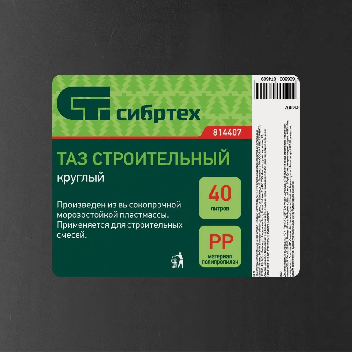 Круглый строительный таз Сибртех 814407 объемом 40 л используется для приготовления штукатурных, шпаклевочных, красящих, клеевых растворов при проведении ремонтных и отделочных работ. Пригодится таз и в быту — в нем удобно хранить и перемещать сыпучие материалы.