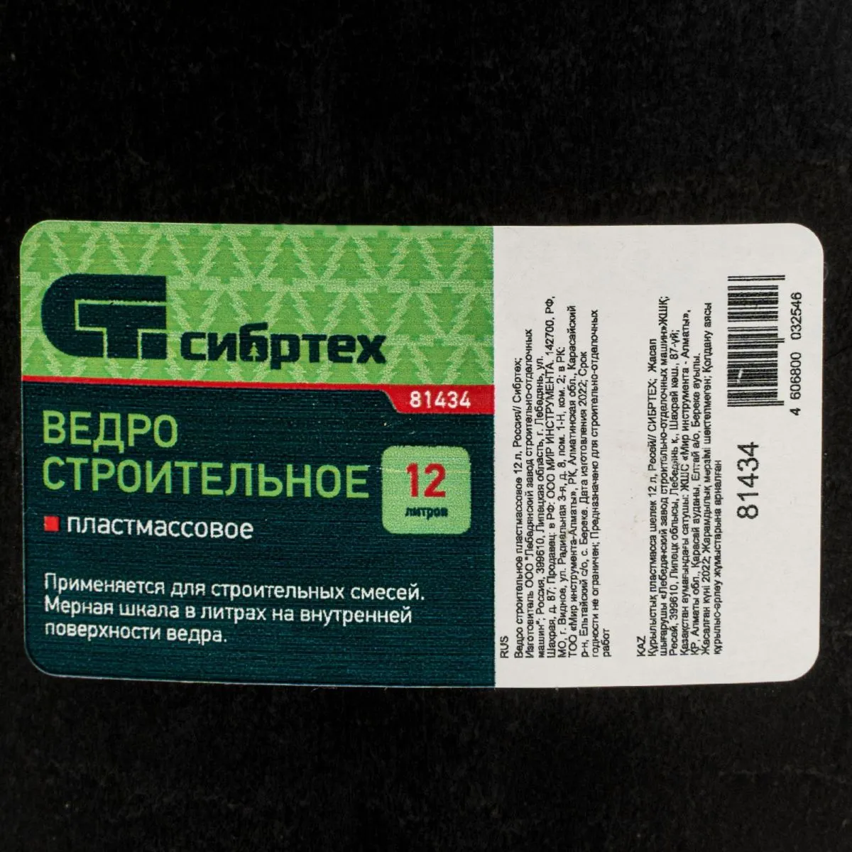 Пластмассовое строительное ведро Сибртех 81434 объемом 12 л используется для строительных и отделочных работ. В нем можно замешивать клеевые и штукатурные смеси, а также перемещать их по строительной площадке. Ведро вмещает до 12 л раствора и подходит для выполнения работ значительного объема.