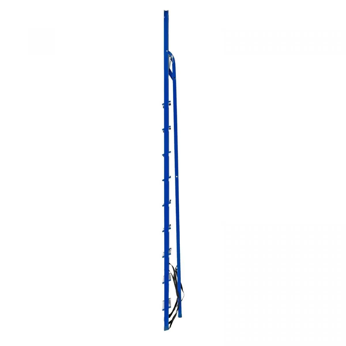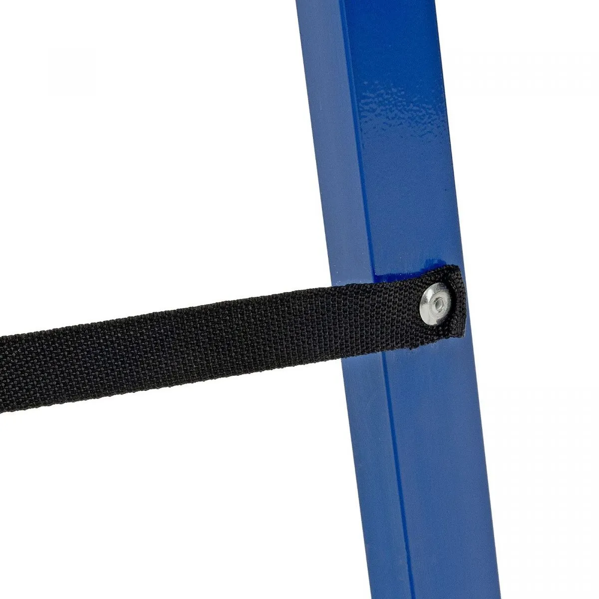 • Надежность — рама изготовлена из профилированной стали, стальная верхняя площадка с зацепами прочно фиксирует стремянку в рабочем положении, страховочные ленты придают дополнительную прочность конструкции.
