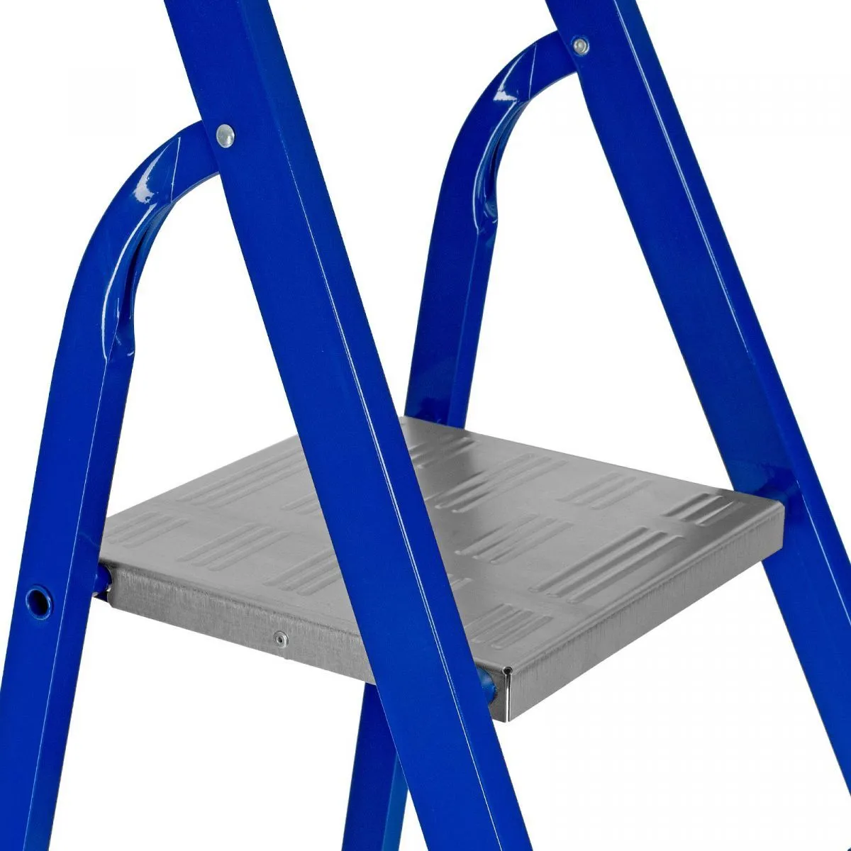 Стремянка Сибртех 97960 со стальным профилем и 10 ступенями, 9 из которых алюминиевые, упрощает доступ к предметам, расположенным на антресолях, шкафах, высоких полках. Также будет полезна для проведения отделочных и монтажных работ. Лестница обладает высокой прочностью при весе 10,2 кг и выдерживает нагрузку до 150 кг. Площадка находится на высоте 210,2 см от опорной поверхности, рабочая высота стремянки составляет 410,2 см (при среднем росте пользователя 170 см).