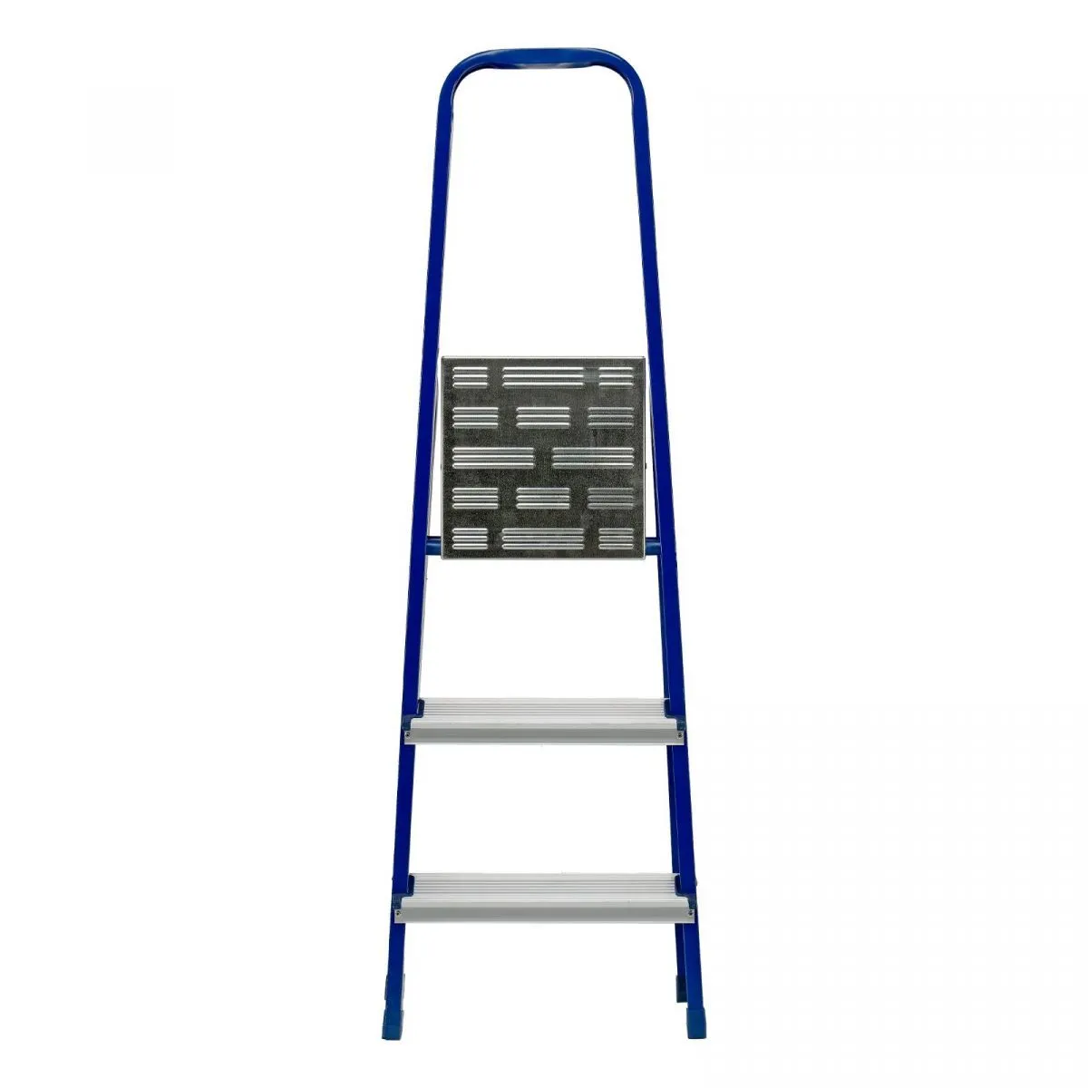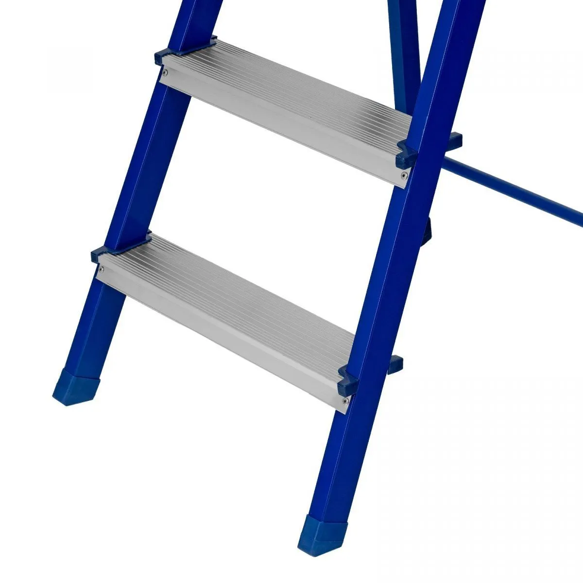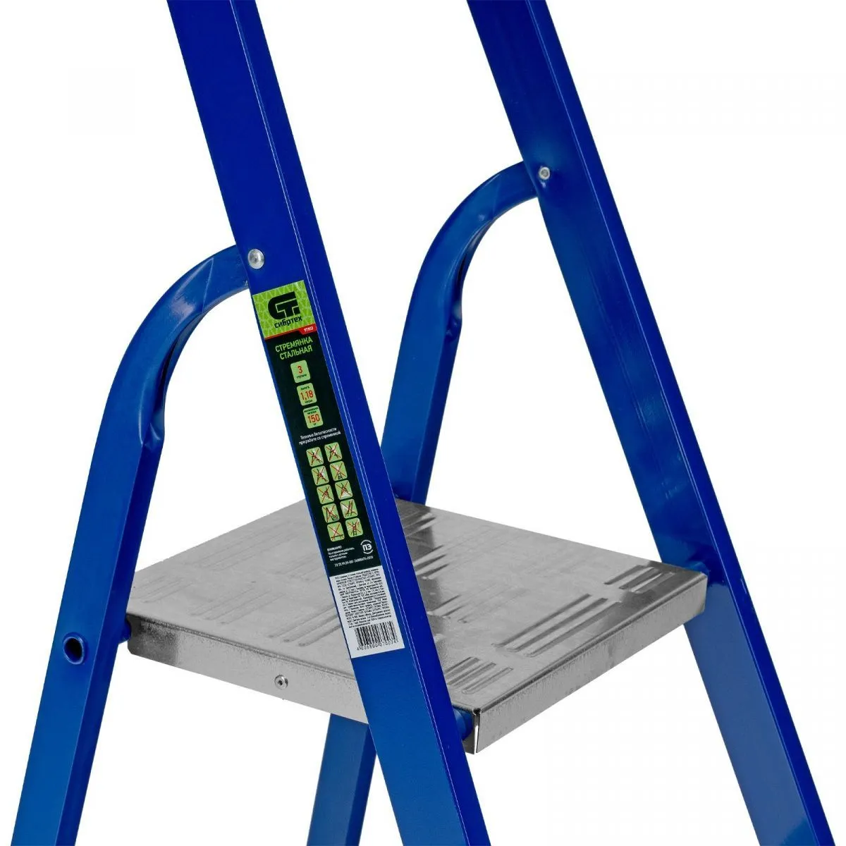 Стремянка Сибртех 97953 со стальным профилем и 3 ступенями, 2 из которых алюминиевые, упрощает доступ к предметам, расположенным на антресолях, шкафах, высоких полках. Также будет полезна для проведения отделочных и монтажных работ. Лестница обладает высокой прочностью при весе 4,4 кг и выдерживает нагрузку до 150 кг. Площадка находится на высоте 57,6 см от опорной поверхности, рабочая высота стремянки составляет 257,6 см (при среднем росте пользователя 170 см).