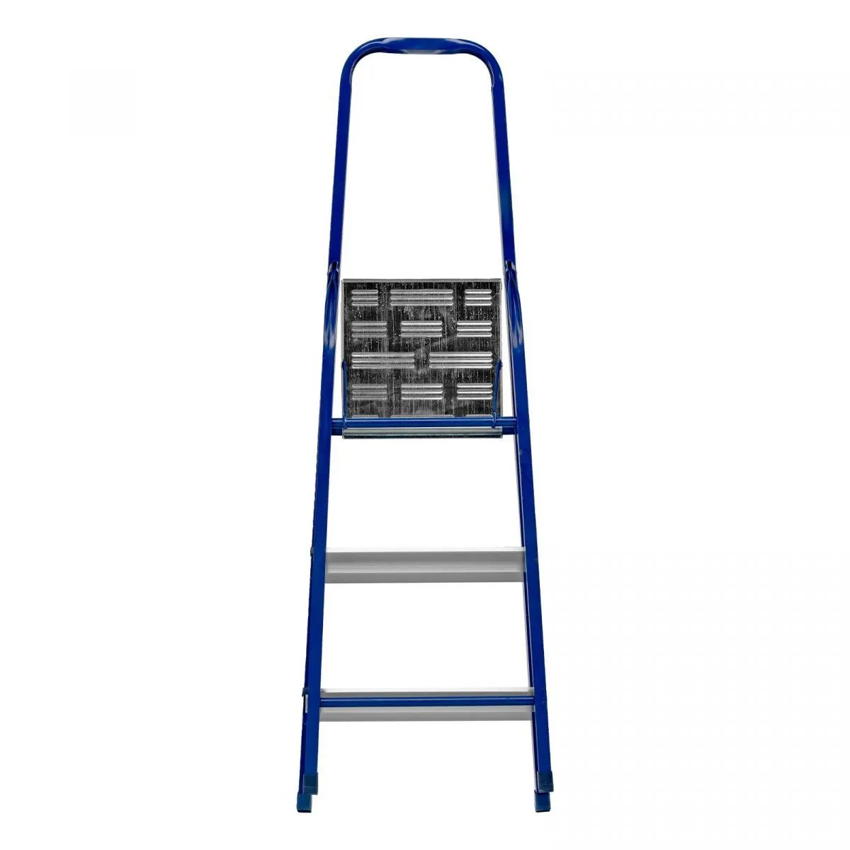 • Надежная конструкция — рама изготовлена из профилированной стали, стальная верхняя площадка с зацепами прочно фиксирует стремянку в рабочем положении.