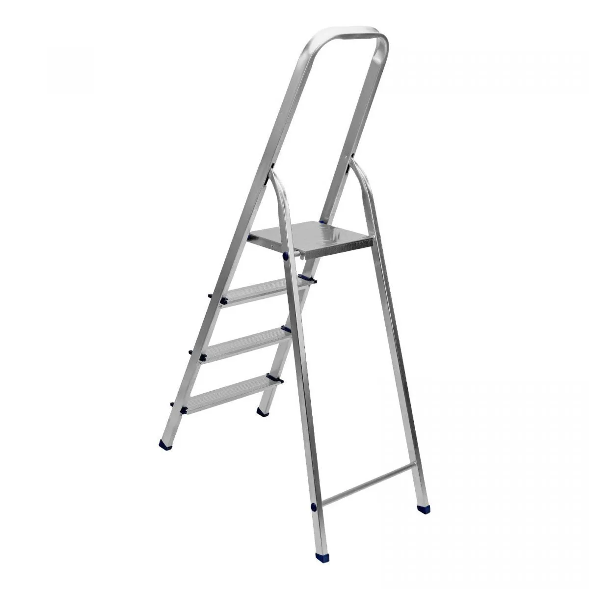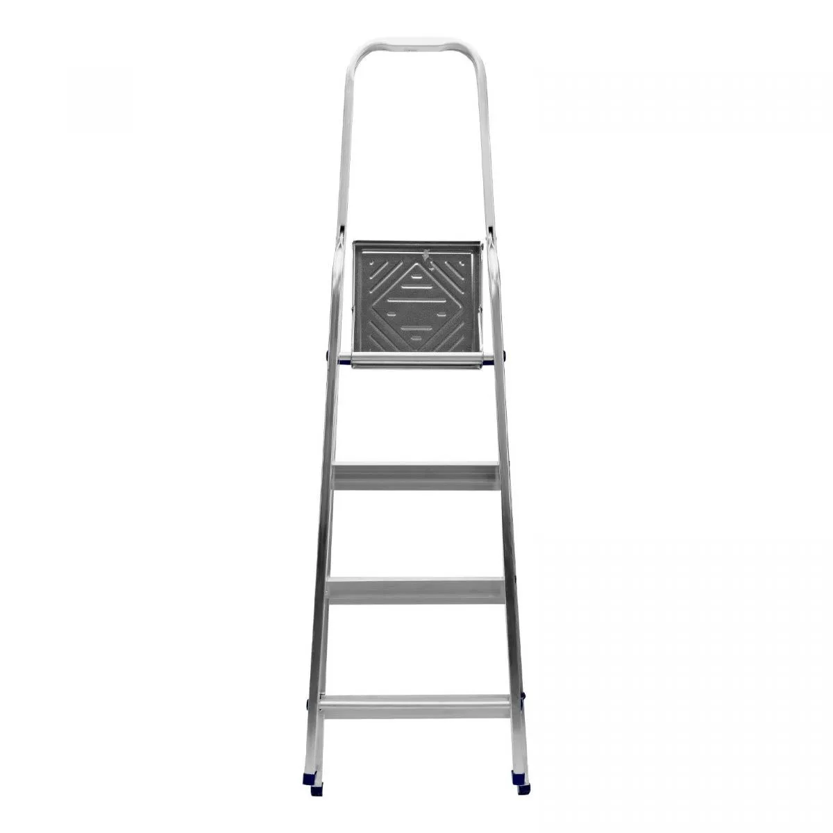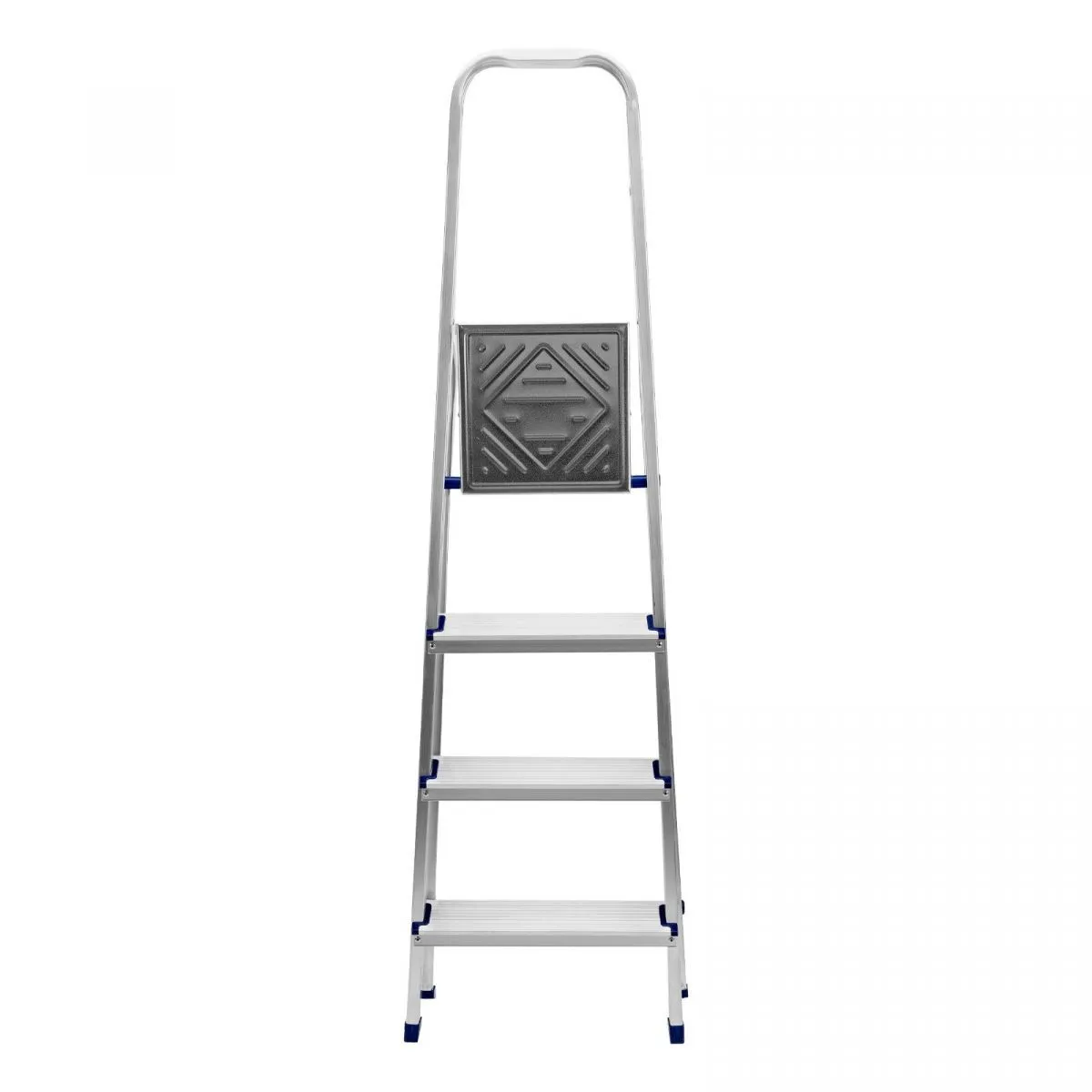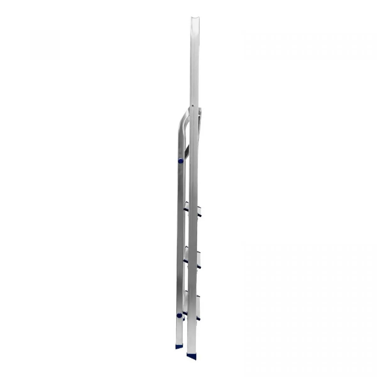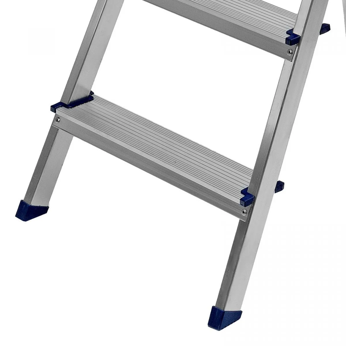 • Надежность — рама из прямоугольного алюминиевого профиля выдерживает нагрузку до 150 кг, широкие ступени закреплены заклепками.