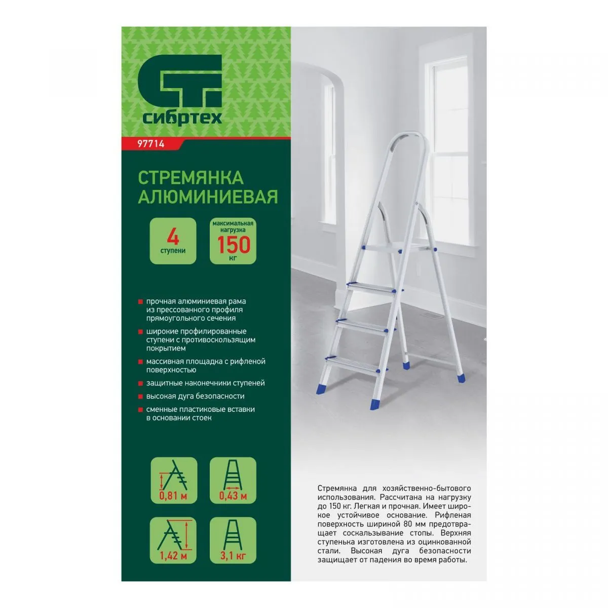 Стремянка, 4 ступени, алюминиевая, Сибртех