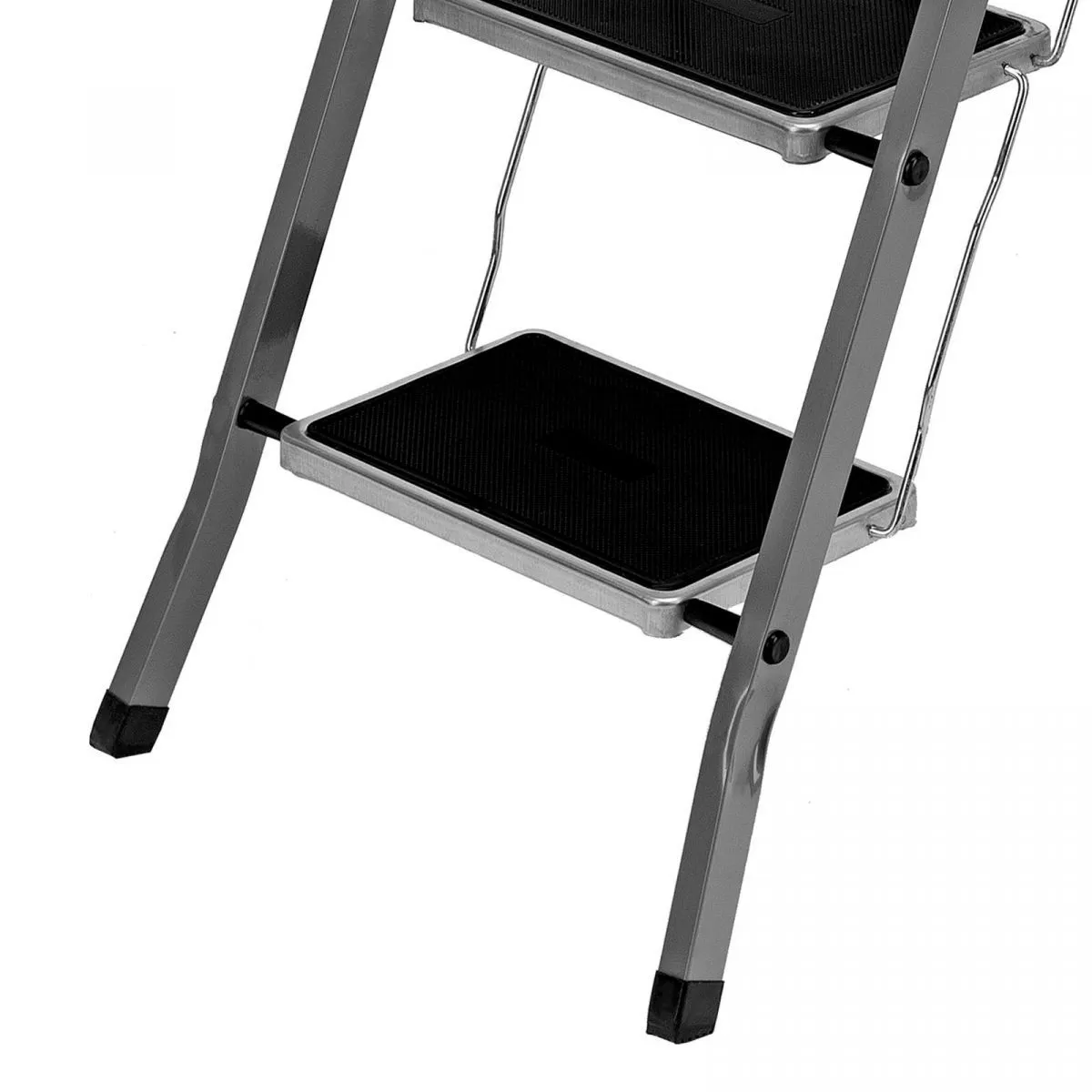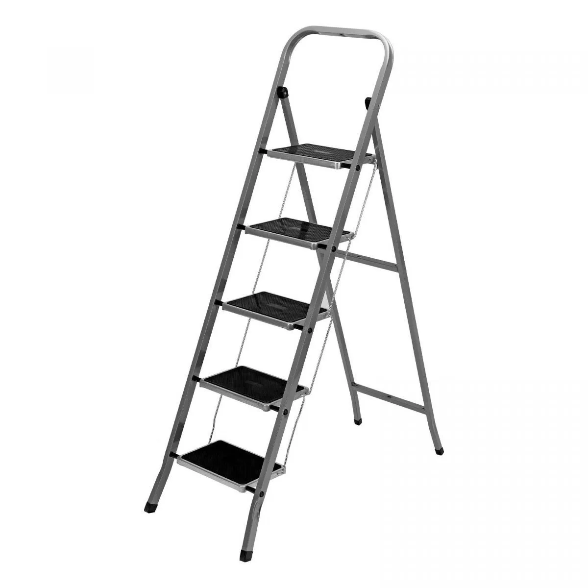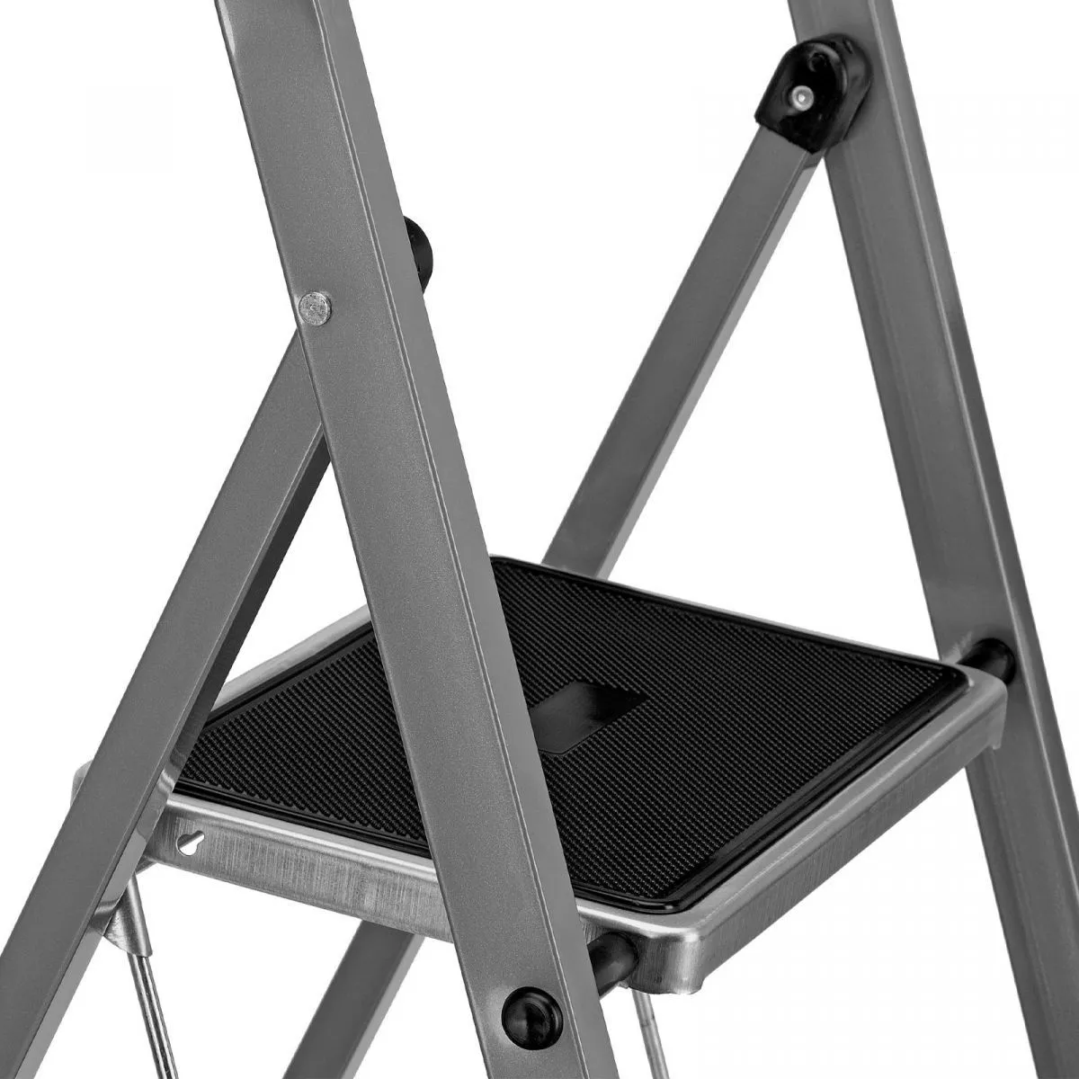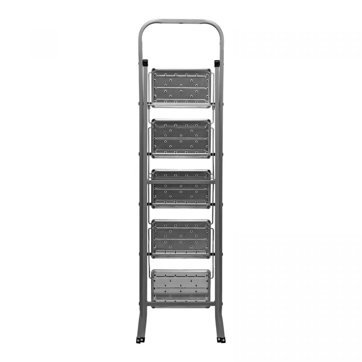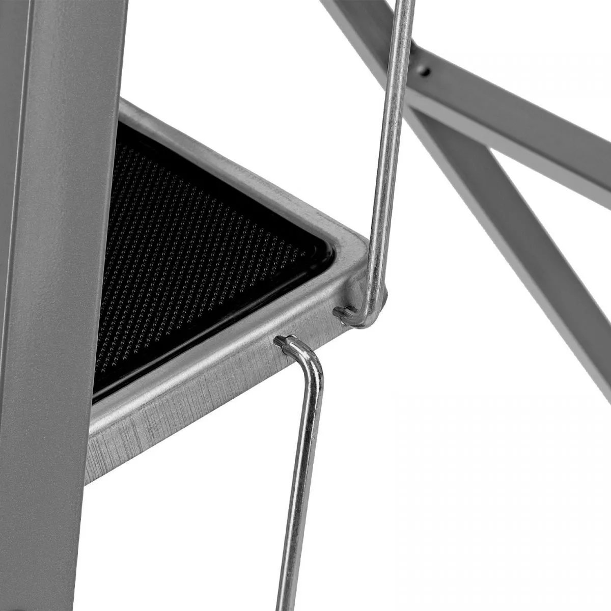 • Прочность — рама и ступени изготовлены из стали, поэтому стремянка выдерживает нагрузку 120 кг.