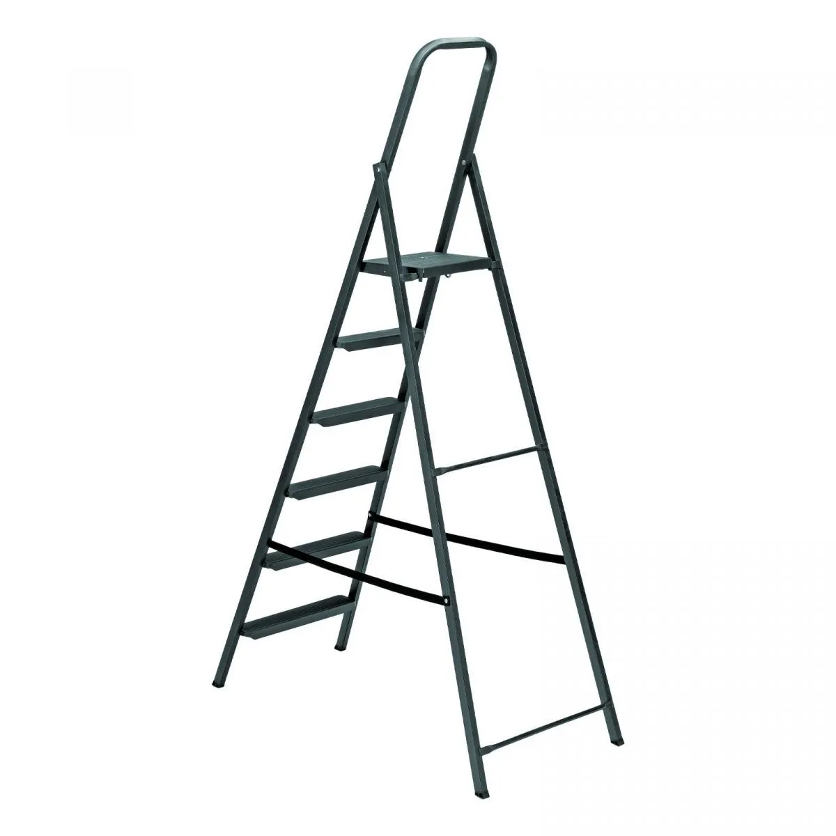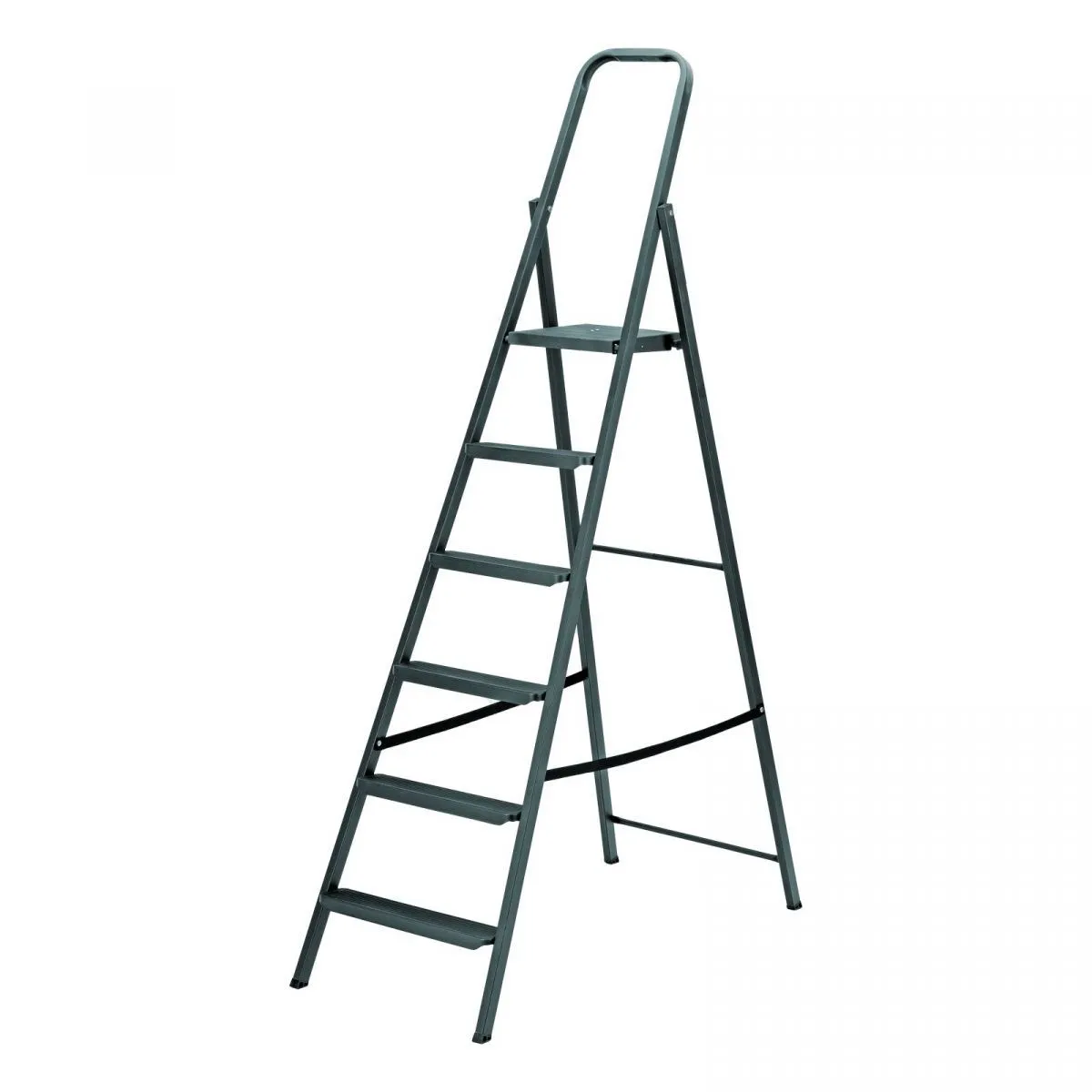 Стремянка компактная стальная Сибртех 97946 с 6 ступенями служит для проведения работ на высоте, превышающей человеческий рост. Стальные профилированные рама и ступени рассчитаны на нагрузку до 150 кг. Площадка находится на высоте 133 см от опорной поверхности, рабочая высота стремянки составляет 333 см (при среднем росте пользователя 170 см). Использовать стремянку можно дома, на даче или в гараже, а также во время строительства и ремонта.