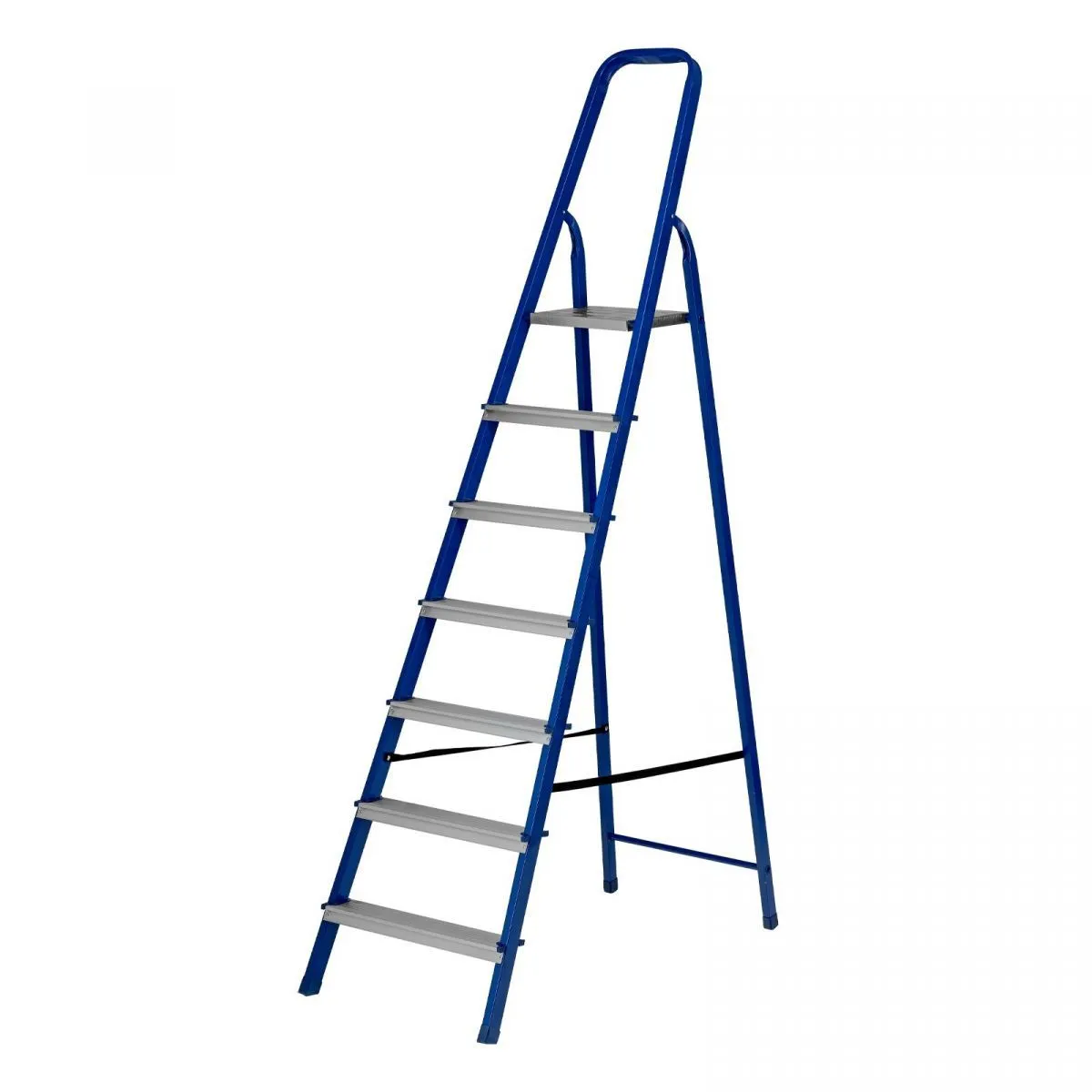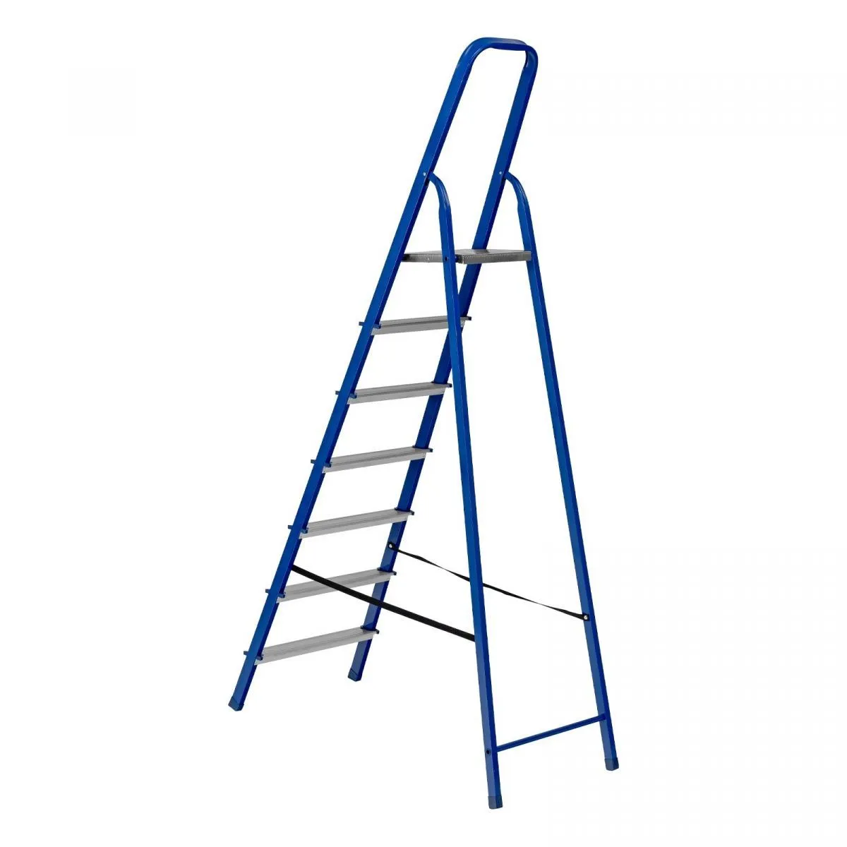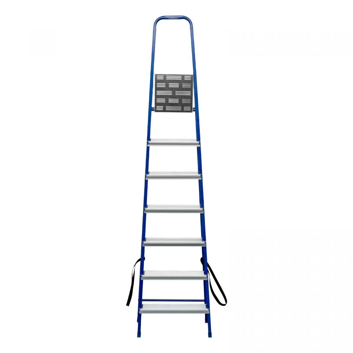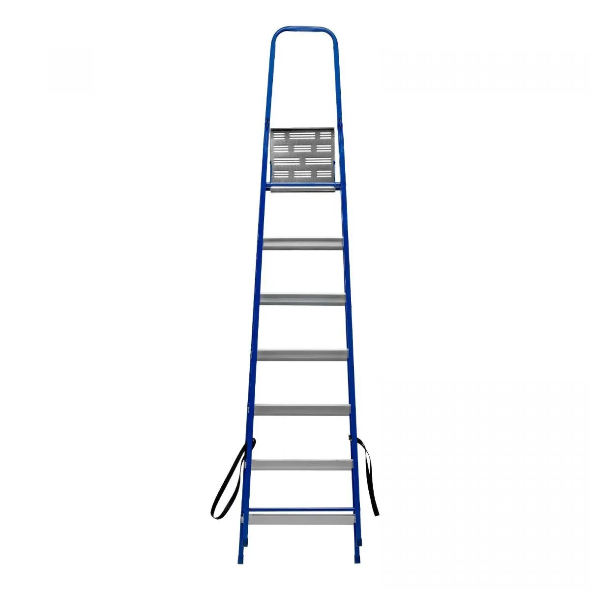 • Надежность — рама изготовлена из профилированной стали, стальная верхняя площадка с зацепами прочно фиксирует стремянку в рабочем положении, страховочные ленты придают дополнительную прочность конструкции.