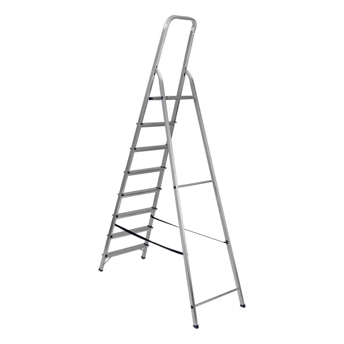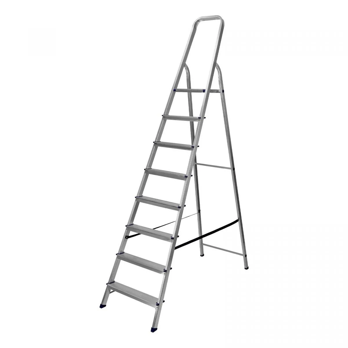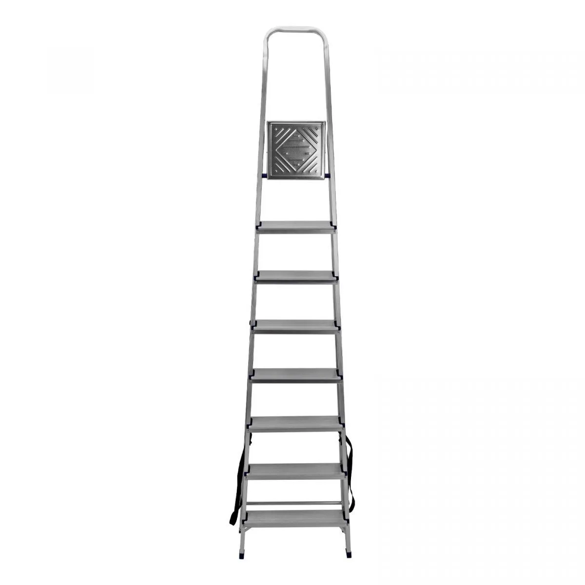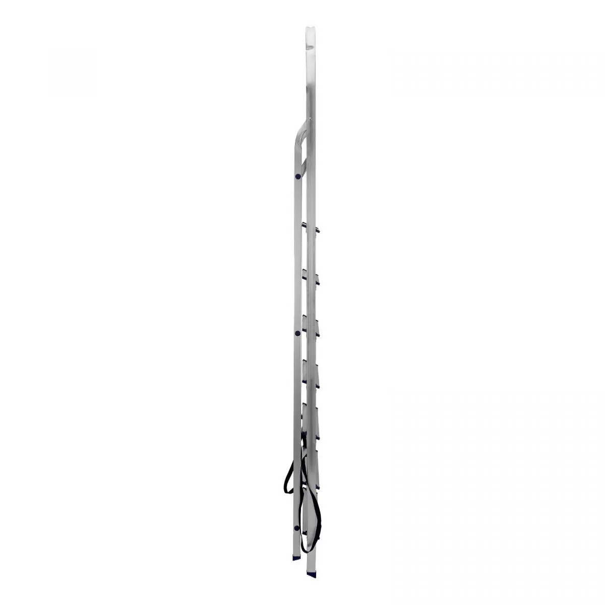 • Надежность — рама из прямоугольного алюминиевого профиля выдерживает нагрузку до 150 кг, широкие ступени закреплены заклепками, страховочные стяжки повышают прочность конструкции.