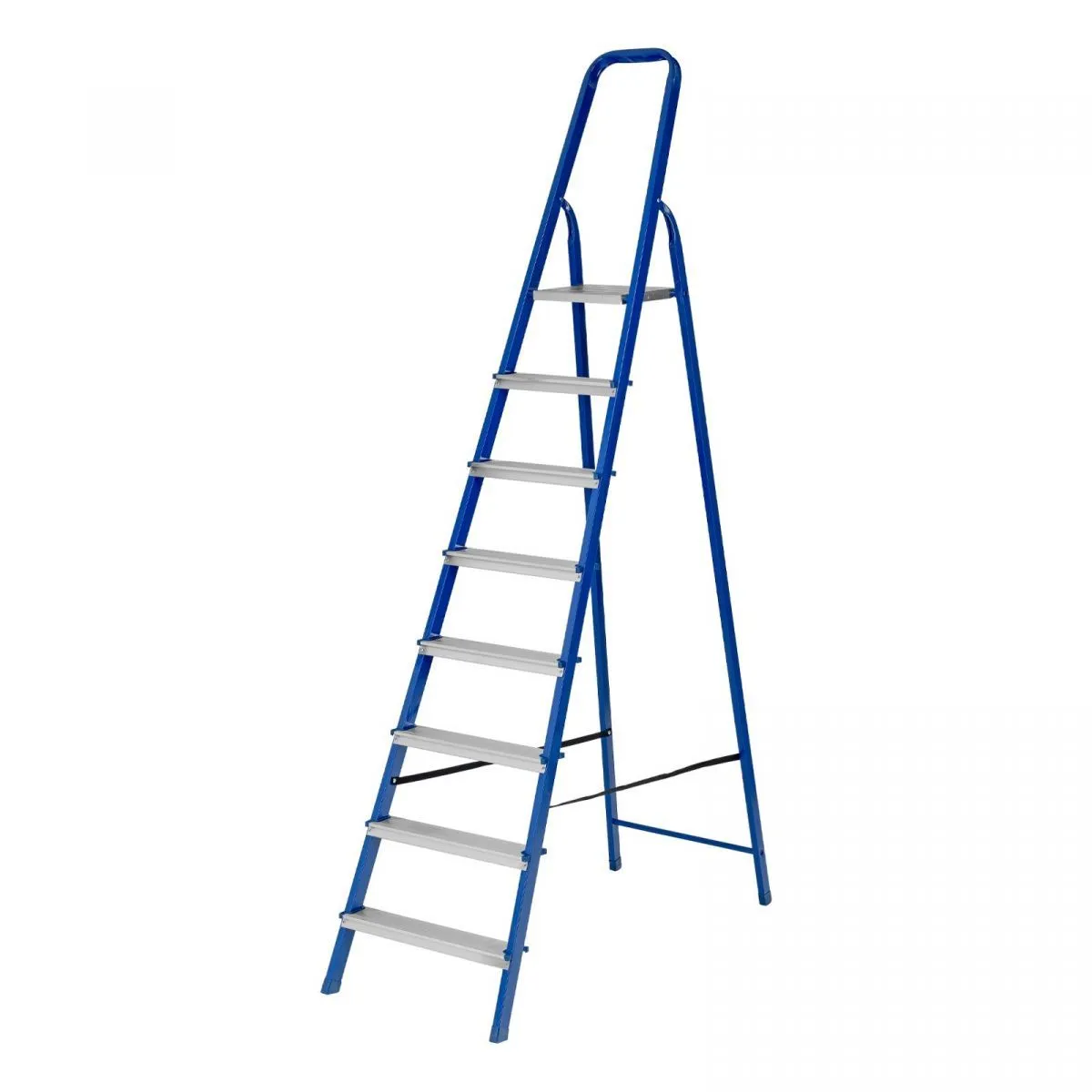 Стремянка Сибртех 97958 со стальным профилем и 8 ступенями, 7 из которых алюминиевые, упрощает доступ к предметам, расположенным на антресолях, шкафах, высоких полках. Также будет полезна для проведения отделочных и монтажных работ. Лестница обладает высокой прочностью при весе 8,5 кг и выдерживает нагрузку до 150 кг. Площадка находится на высоте 166,6 см от опорной поверхности, рабочая высота стремянки составляет 366,6 см (при среднем росте пользователя 170 см).