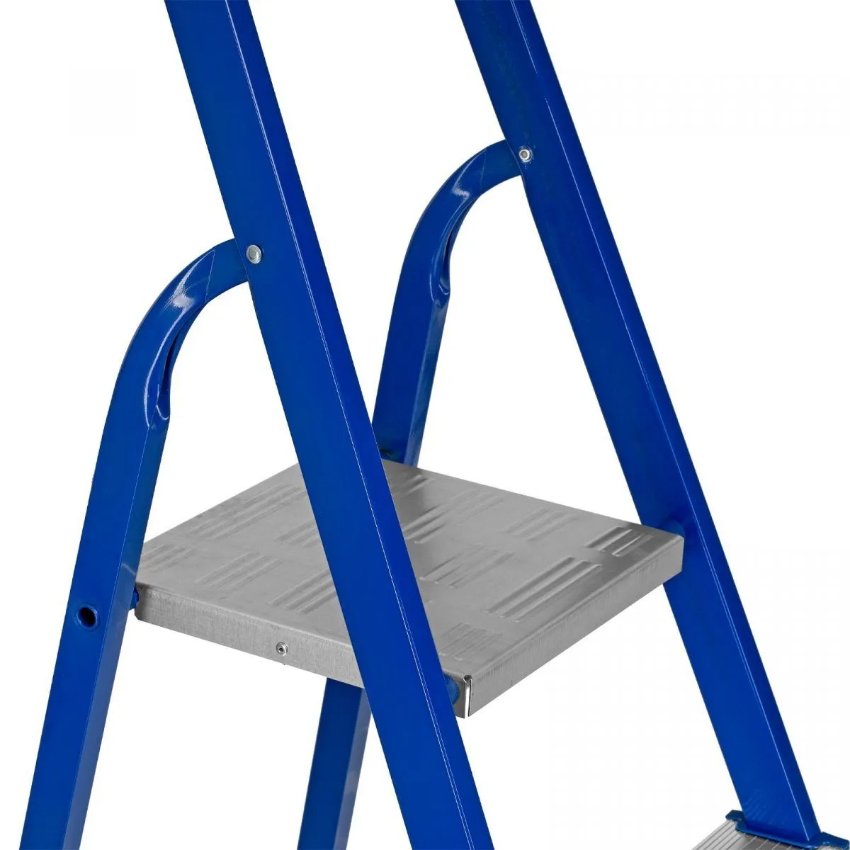 • Комфортная работа — стремянка имеет широкие ступени и высокую дугу безопасности.