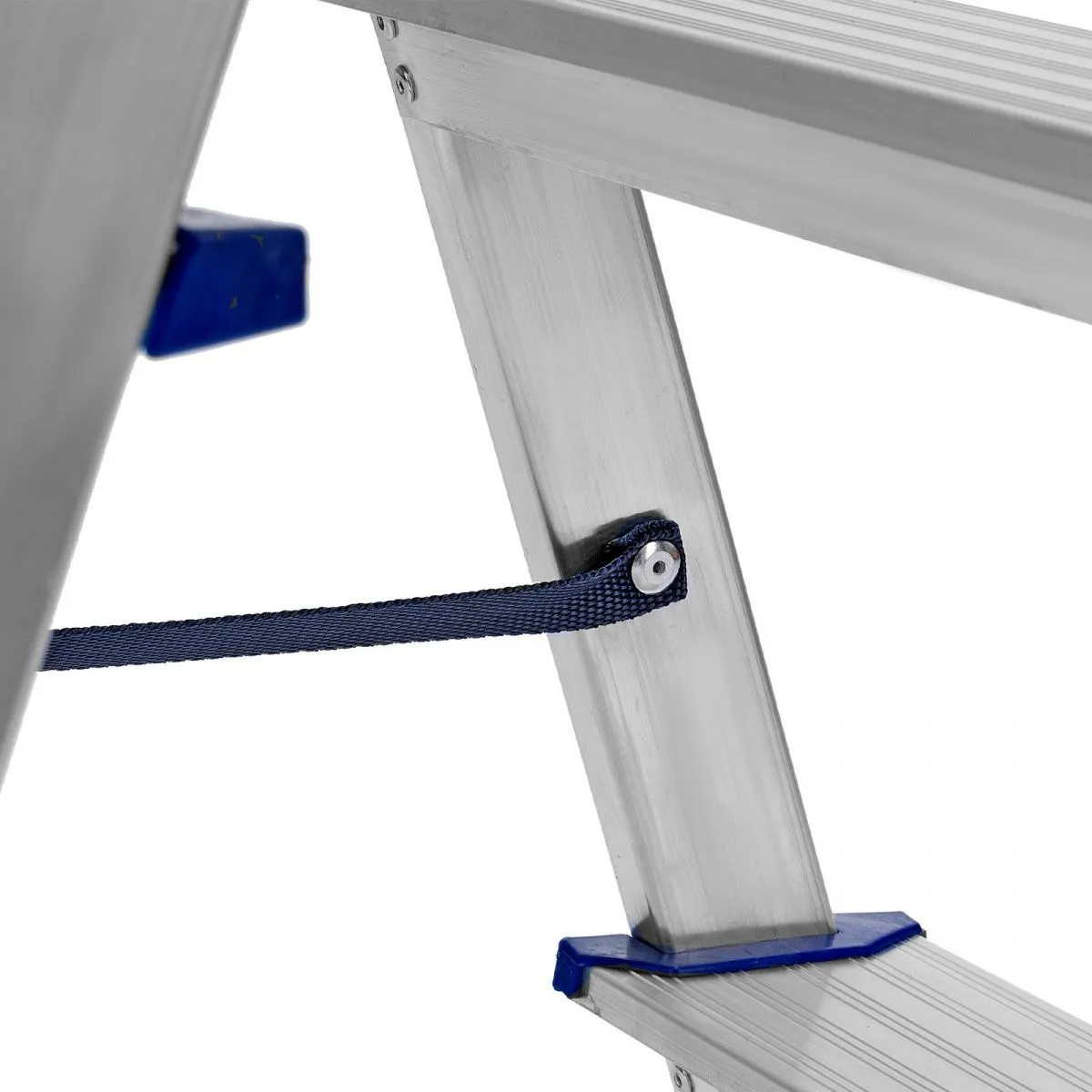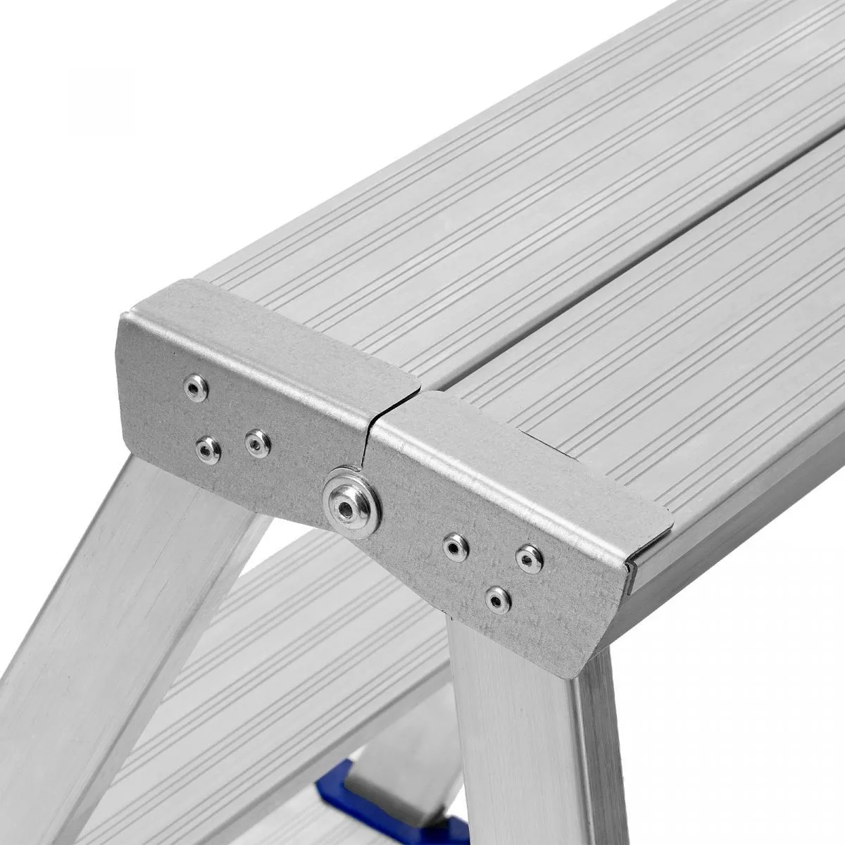 • Долговечность — стремянка выполнена из легкого, но прочного алюминия, устойчивого к коррозии.
