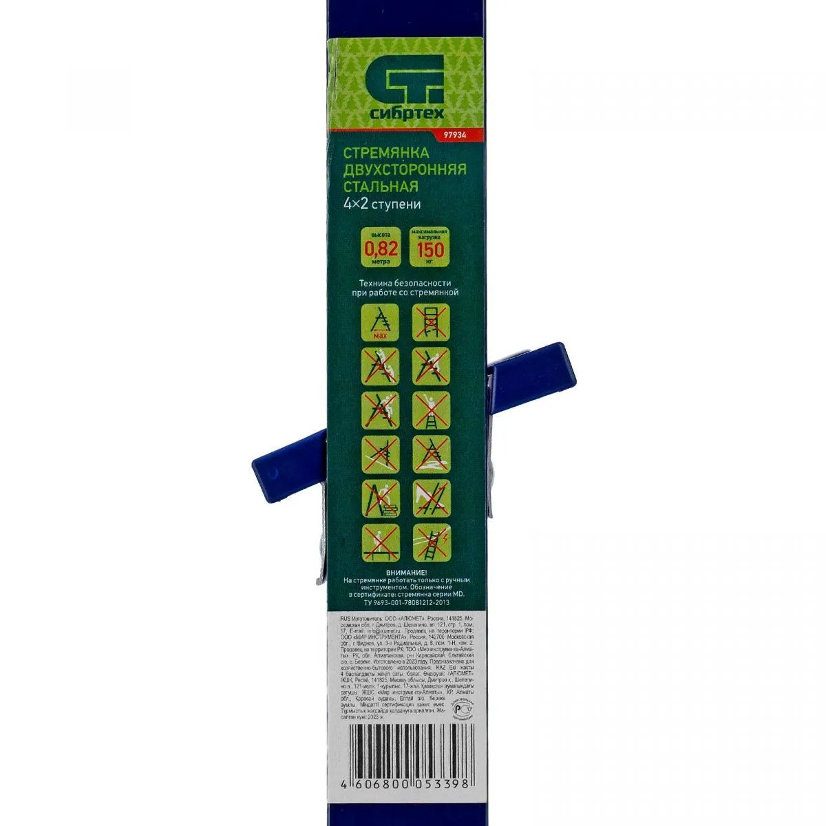Стремянка двусторонняя 4 ступени, стальная, Сибртех