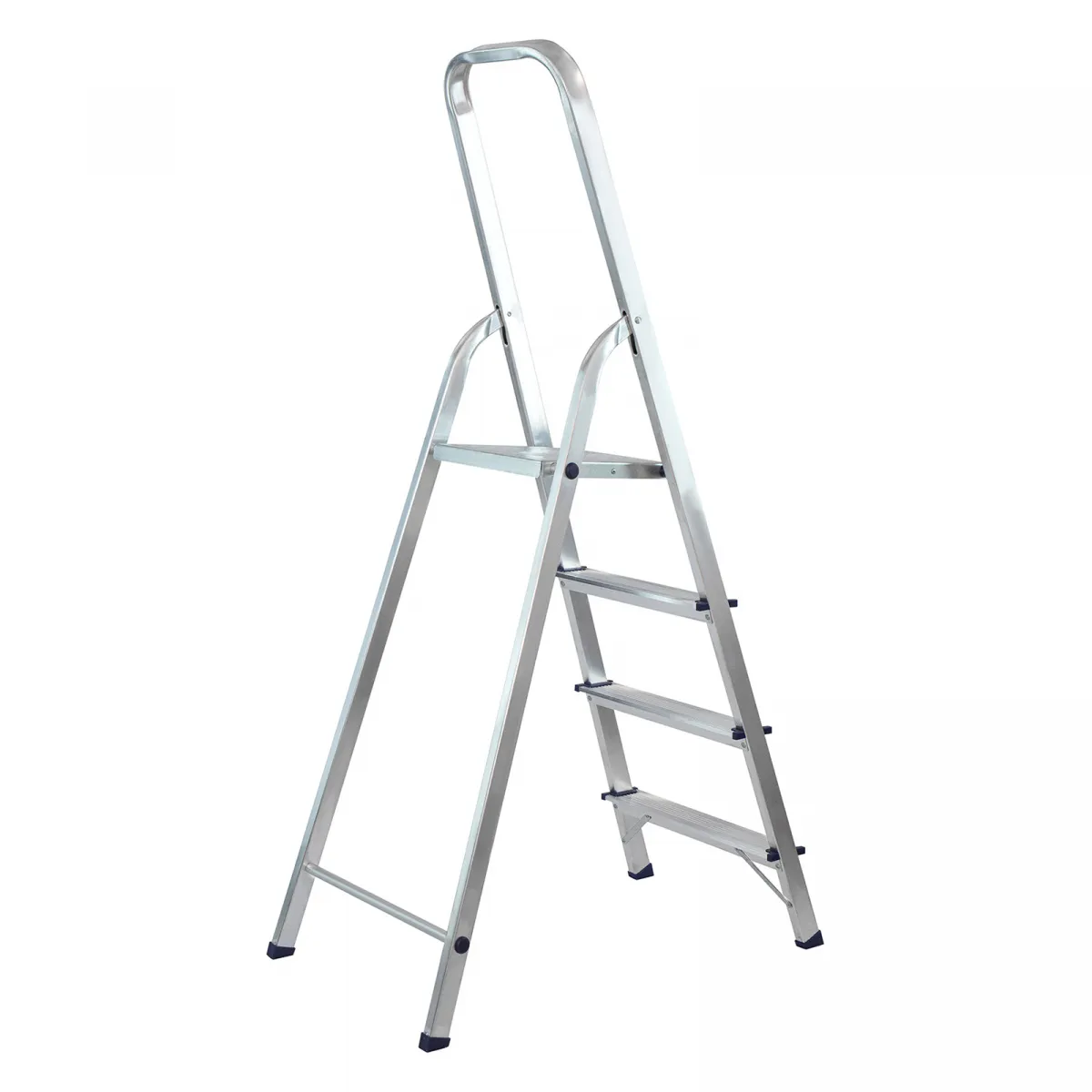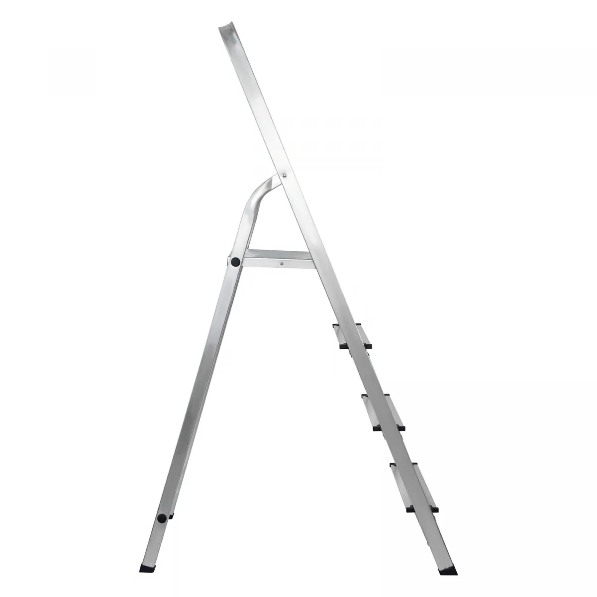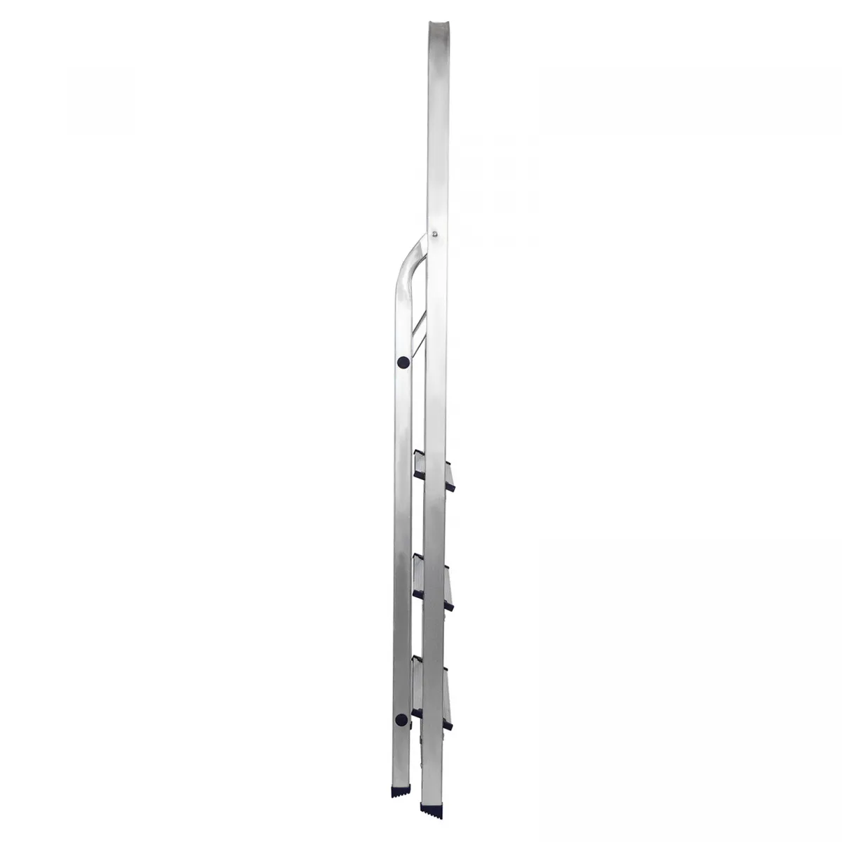 • Надежность — рама из прямоугольного алюминиевого профиля выдерживает нагрузку до 150 кг, широкие ступени закреплены заклепками.