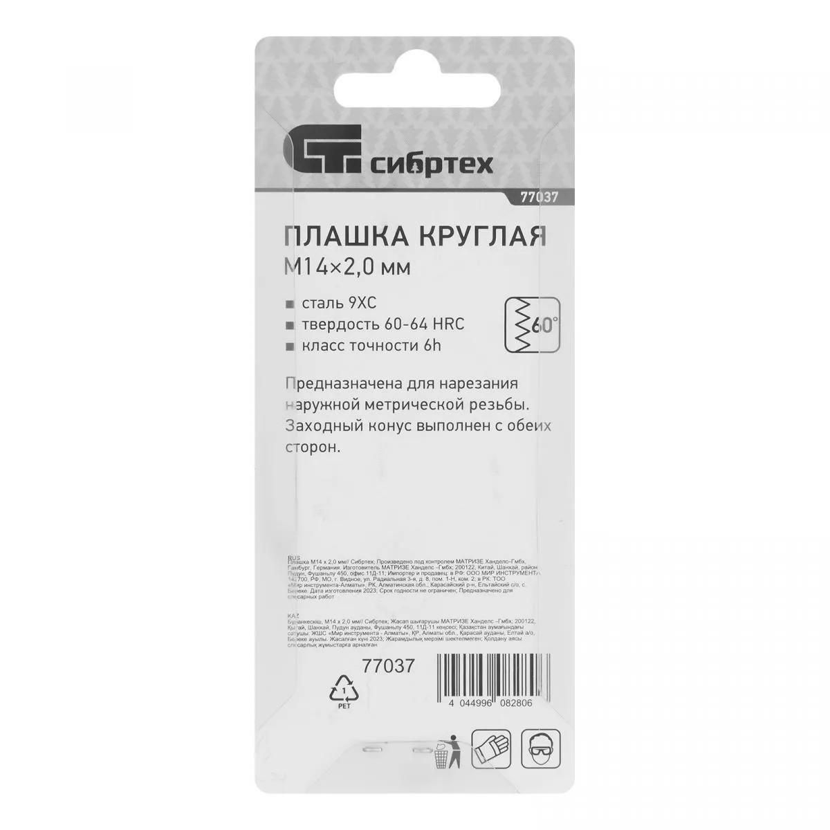 Плашка М14 х 2 мм Сибртех