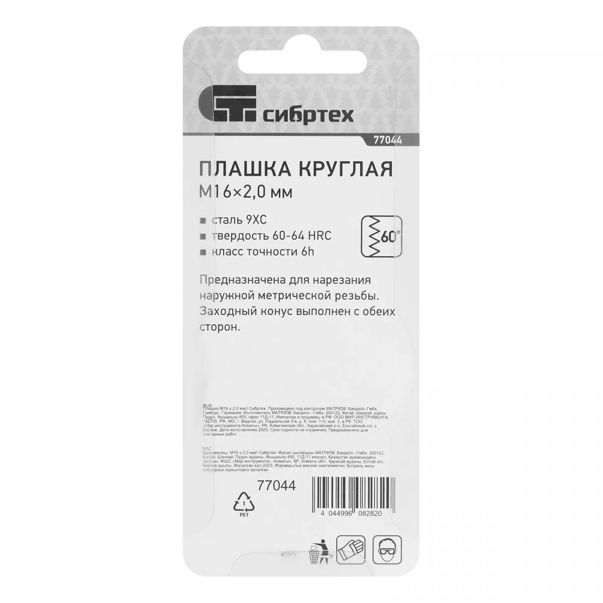 Плашка Сибртех 77044 типоразмера М16 х 2,0 мм предназначена для нарезания внешней метрической резьбы. Проста в использовании, поэтому пригодится даже начинающему мастеру для проведения слесарных и монтажных работ в быту. Цельная конструкция плашки позволяет полностью захватить деталь и нарезать высокоточную резьбу за один проход.