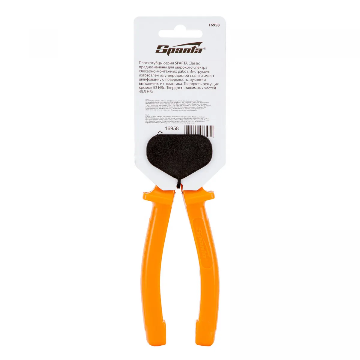 Плоскогубцы Classic, 180 мм, шлифованные, пластмассовые рукоятки Sparta