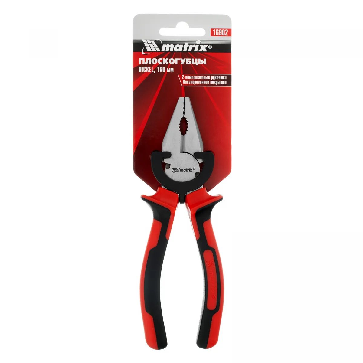 Плоскогубцы Nickel, 160 мм, никелированные, двухкомпонентные рукоятки Matrix