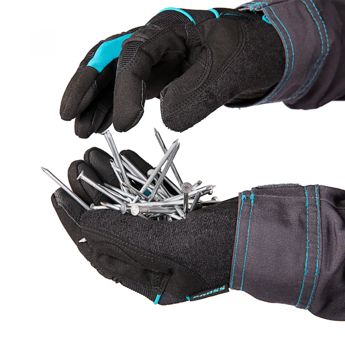 • Нескользящая поверхность — перчатки помогают надежно удерживать инструменты, поскольку на пальцах имеются латексные протекторы.