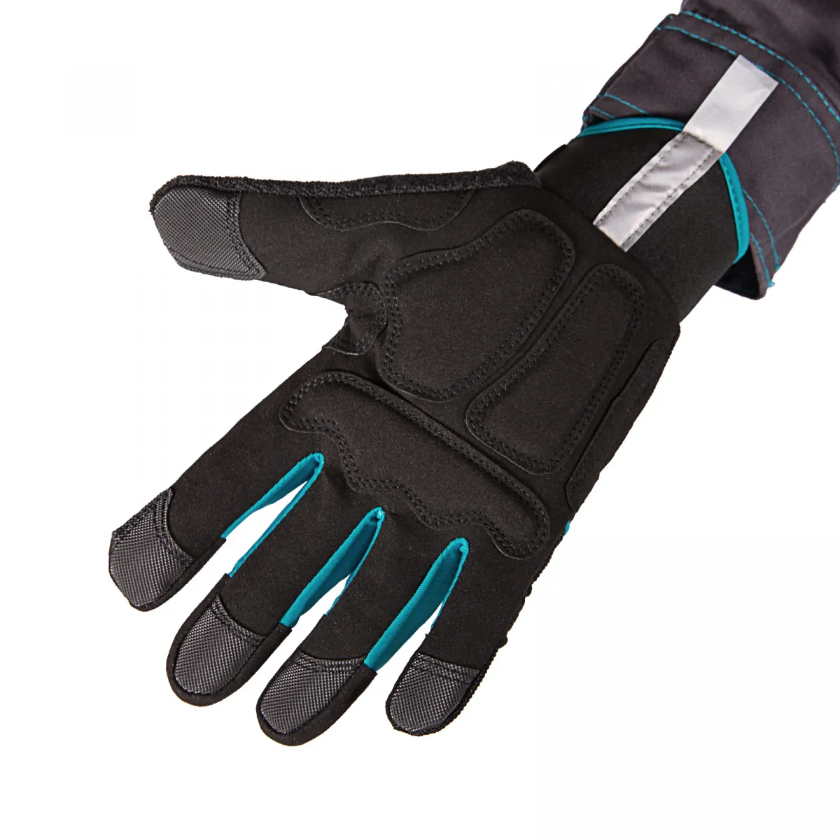 • Защита от строительного мусора — посторонние частицы не попадают внутрь перчаток, т.к. гибкие неопреновые манжеты плотно фиксируются на запястьях лентами-застежками типа velcro.