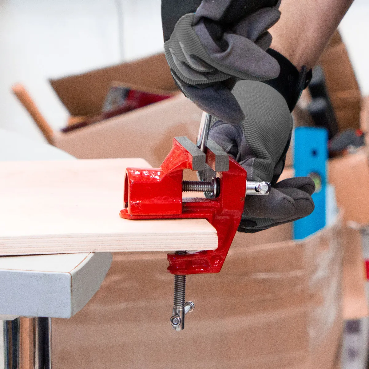 • Винтовой зажимной механизм позволяет легко устанавливать и снимать тиски с рабочего стола.