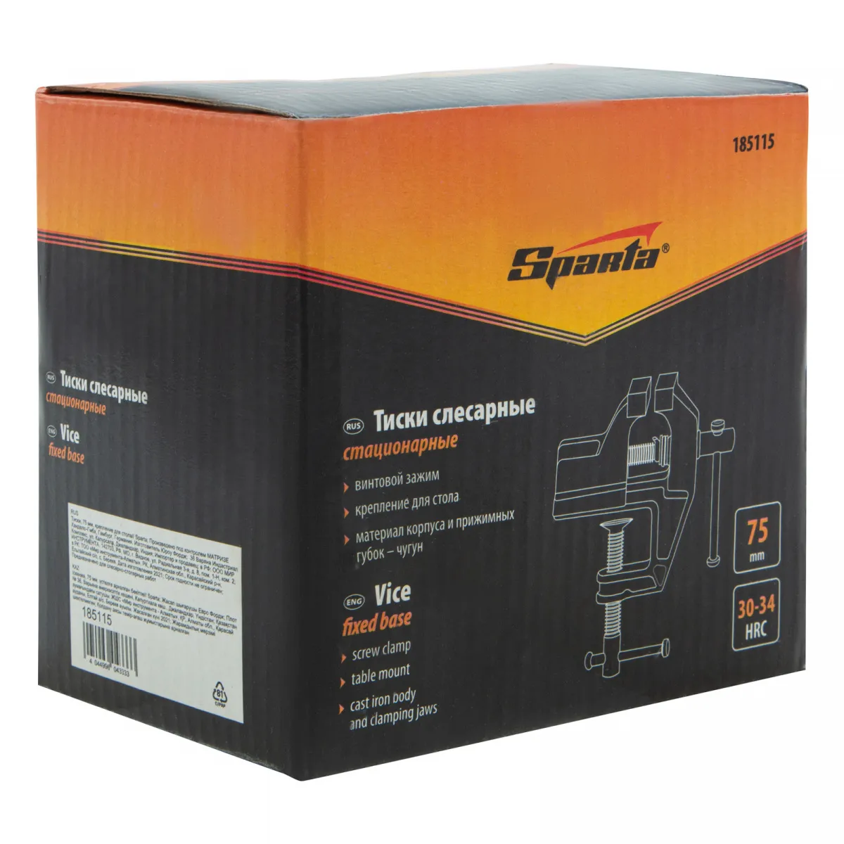 Тиски Sparta 185115 с губками шириной 75 мм и креплением для стола позволяют надежно зафиксировать небольшие деревянные детали. Пригодятся при выполнении столярных и слесарных работ в мастерской или гараже. Рабочий ход составляет 35 мм, что позволяет устанавливать малогабаритные изделия.